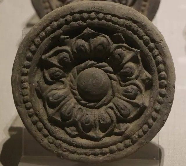 周代,古人发明了瓦。制瓦人先做一个圆筒形的陶坯,然后剖开入窑烧造,4剖或6剖为板瓦,对剖为筒瓦。瓦当就是把筒瓦一端做成封闭状即可。