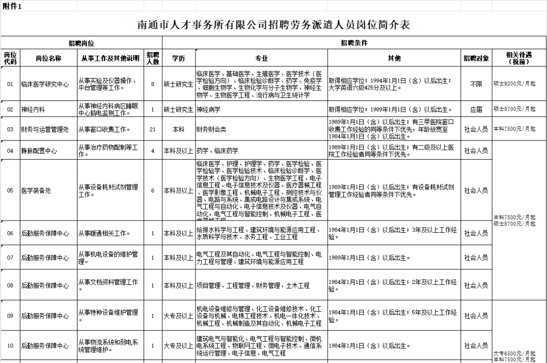 三甲 | 南通大学附属医院招聘派遣人员公告