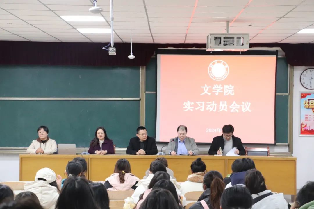 为深入推进教育实习工作,进一步落实人才培养方案,保障实习活动顺利进行,3月7日下午,文学院实习动员大会在明义1-239教室顺利举行。文学院院长周忠元,汉语言文学专业教研室主任陈为艳,课程与教学论教研室主任张萌苗,学生工作办公室副主任王浩明出席了本次大会。会议由文学院党委副书记庞晓东主持。