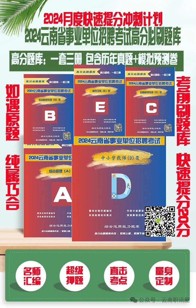 涵盖2024云南省事业单位招聘考试ABCDE五类!