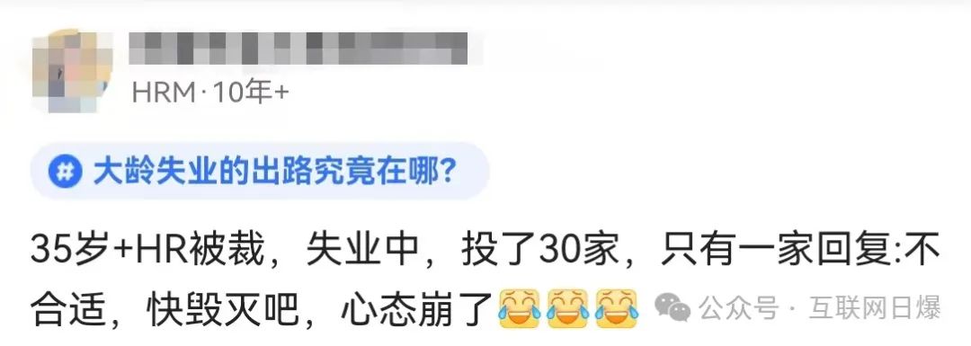 某HR在论坛发文称,自己是位35+的HR,目前正处于失业中,投了30份简历,只有一家公司回复说不合适,其他的公司连回复都没有。后来即使有面试机会了,但能给到的薪资待遇却都是大打折后,她感慨心态都崩了。