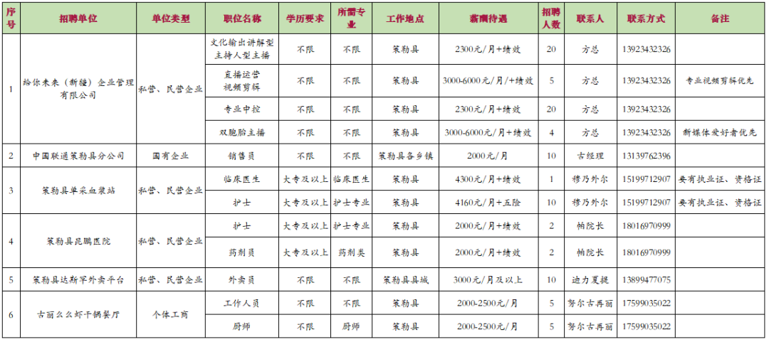 和田华夏传媒有限责任公司,和田地区抖音本地生活区域服务商,现面向社会公开招聘。具体招聘岗位如下: