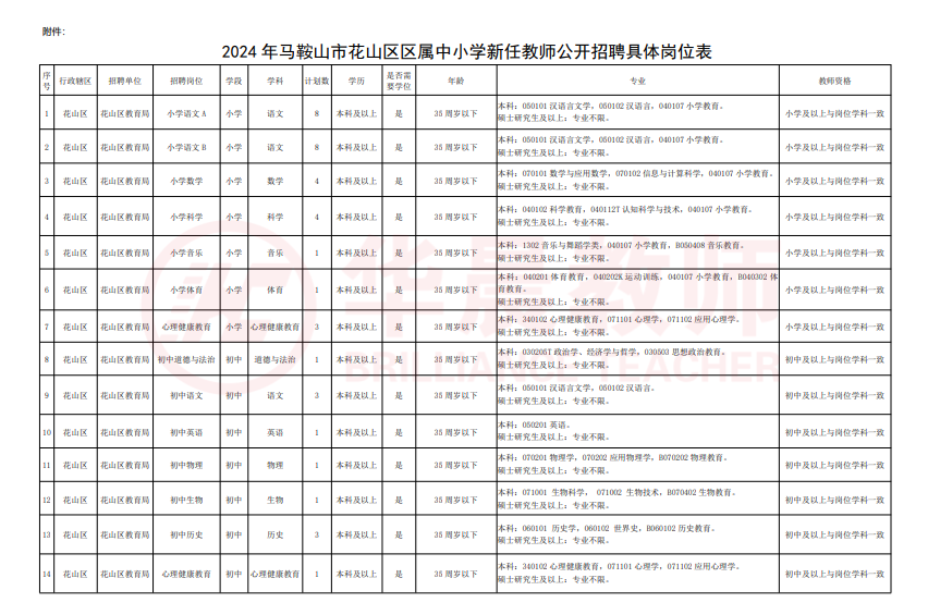 八、编制40名!2024年马鞍山市花山区区属中小学新任教师公开招聘公告