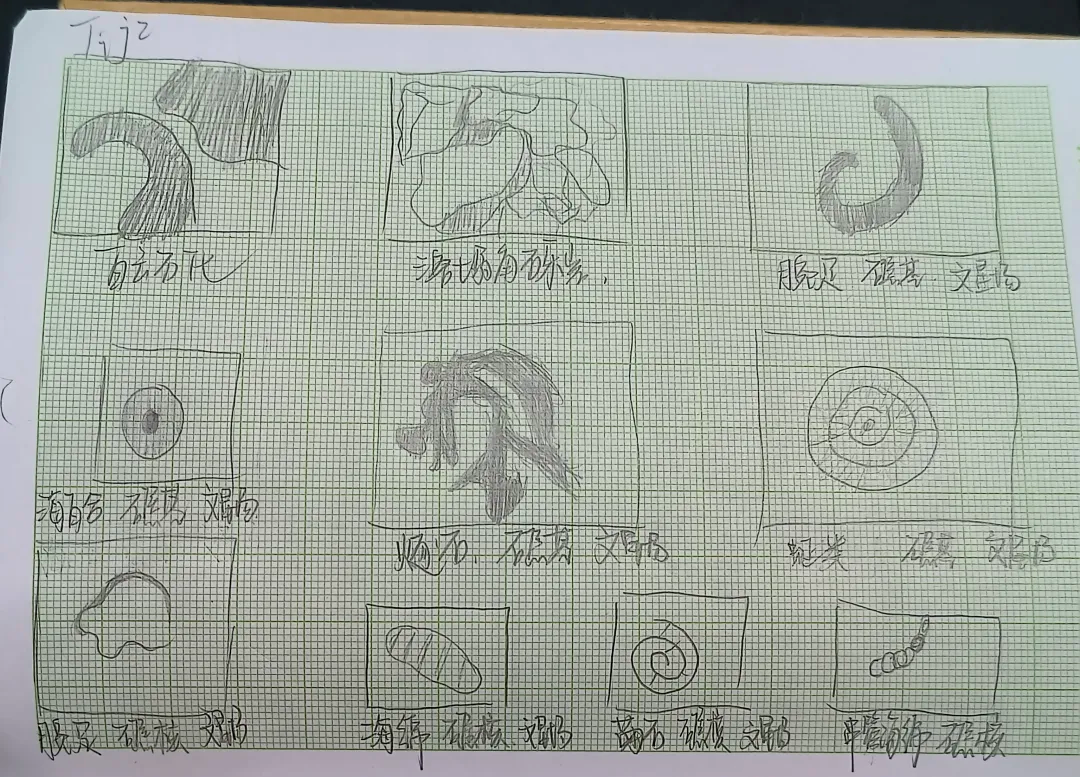 同学们认真辨别岩石表面的生物遗迹