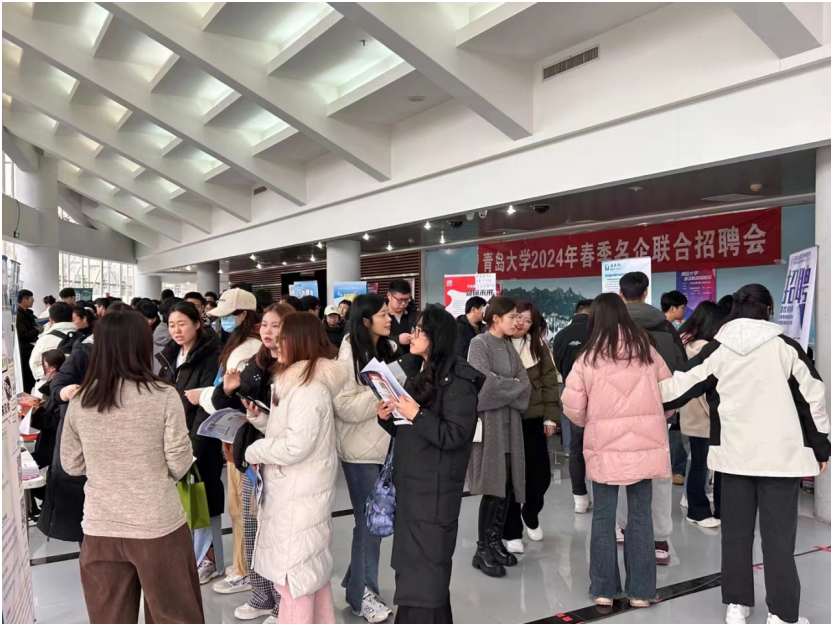 2024年3月7日下午,“青岛大学2024年春季名企联合招聘会”在浮山校区体育馆二楼环形走廊顺利举办,本次招聘活动通过校园线下招聘、网络线上会场招聘的形式,精准地向2024届毕业生送岗位、送服务。