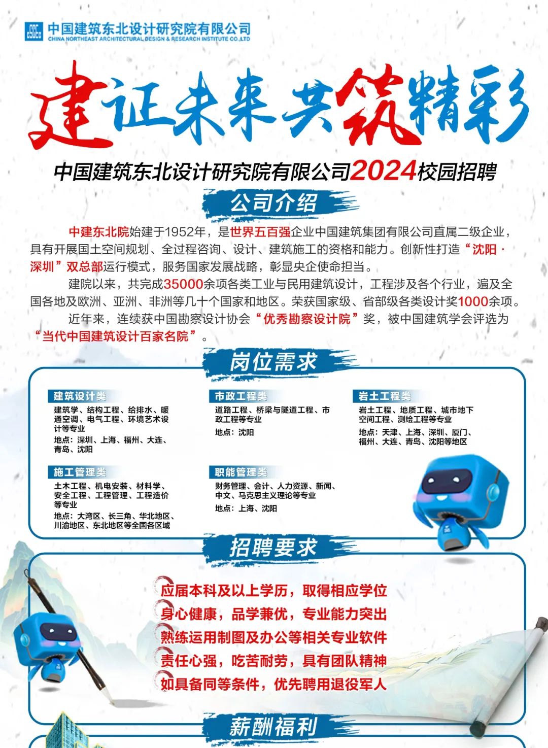 【校园招聘】中国建筑东北设计研究院有限公司2024届校园春季招聘全面启动