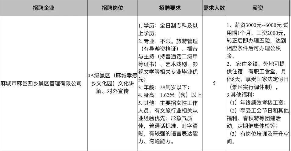 麻城市麻邑四乡景区管理有限公司位于麻城市湖广大道孝感乡文化公园内,该公司成立于2019年,工作环境优美,主要经营范围是景区经营、管理、运营、维护;旅游资源开发、经营、管理;文化传播;景区游览服务;导游讲解服务等。公司下设文化发展部、安全管理部、综合管理部、工程管理部等四个部门,团队年轻人占比大。公司以创新为动力,致力于打造高品质的旅游景区,提供优质的旅游体验,为行业发展做出更大的贡献。