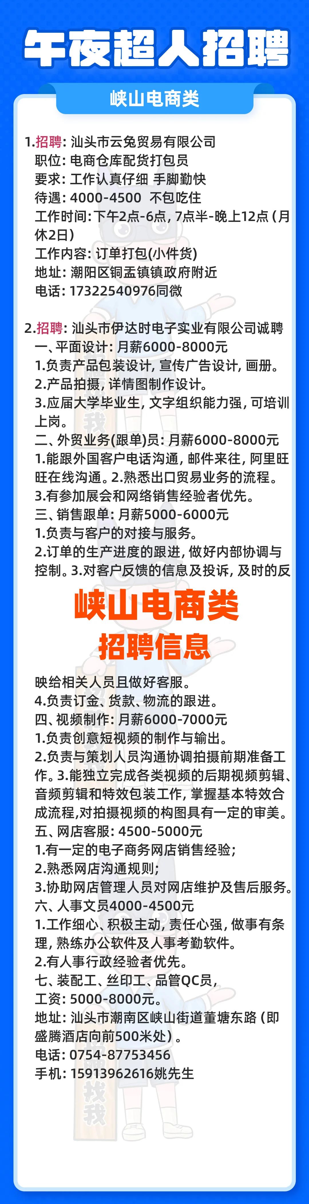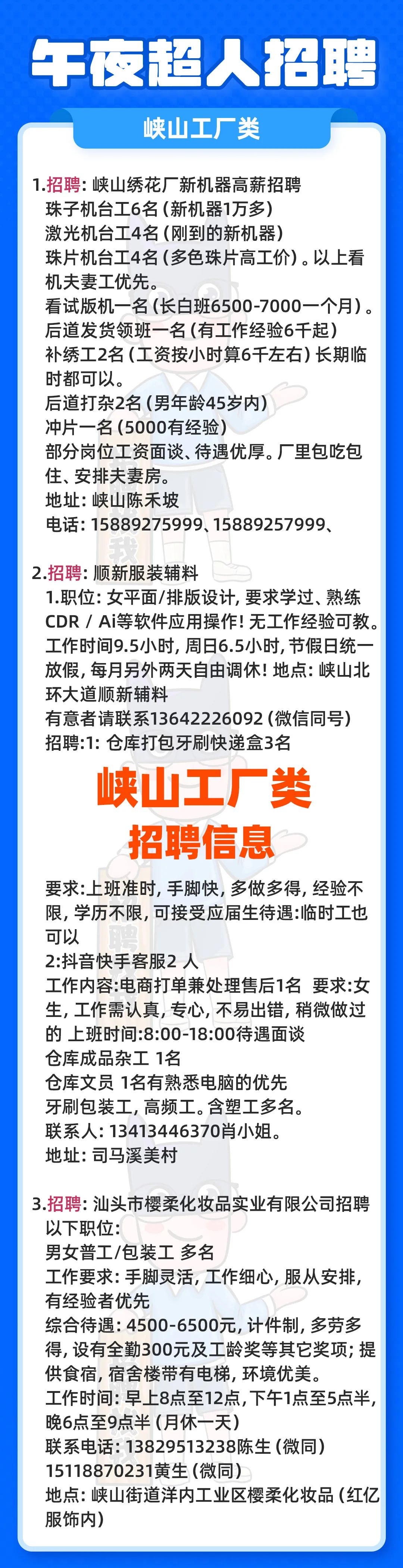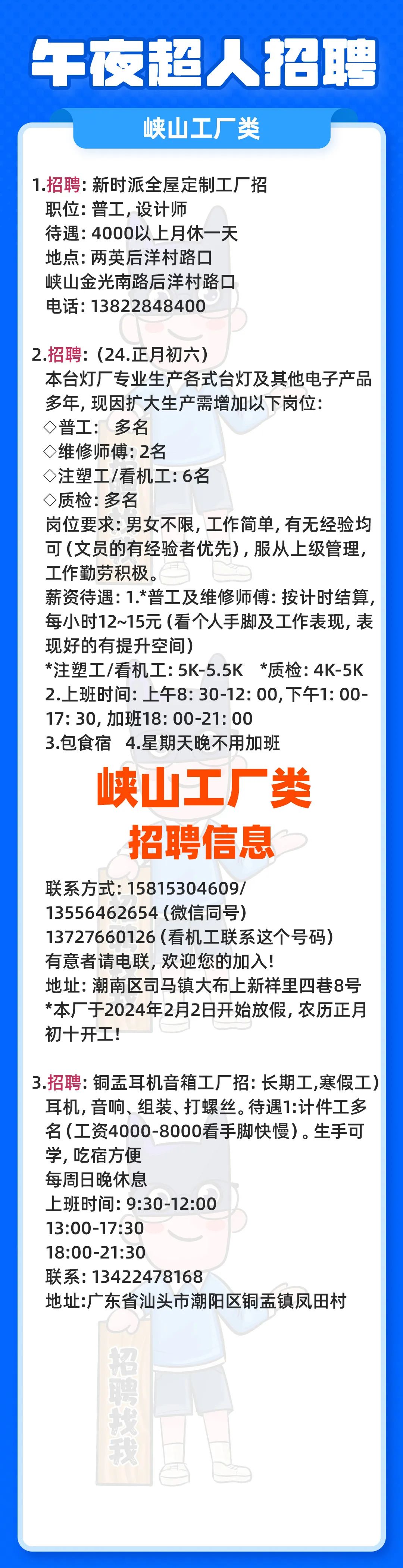 沙集 耿车 凌城 高作 周边最新 招聘信息3-8星期五