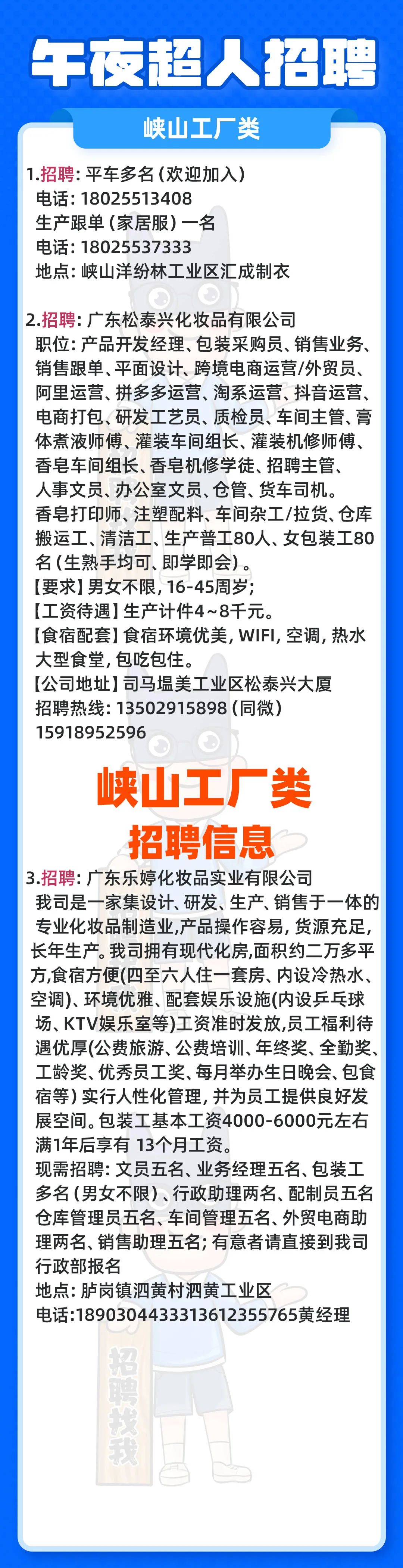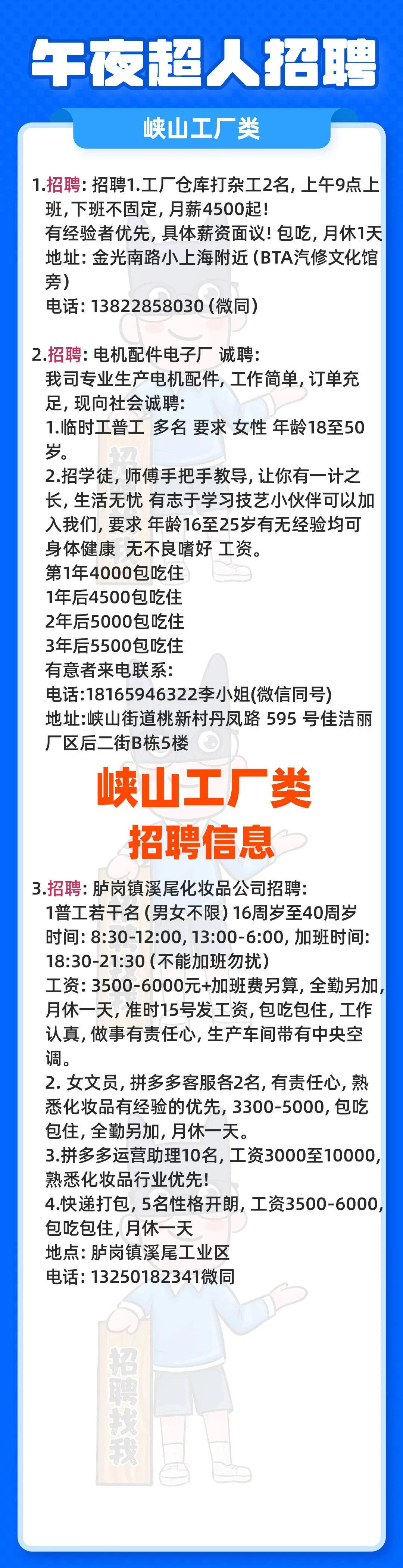3月9日永康/白洋渡/百花山/缙云工业区最新招聘