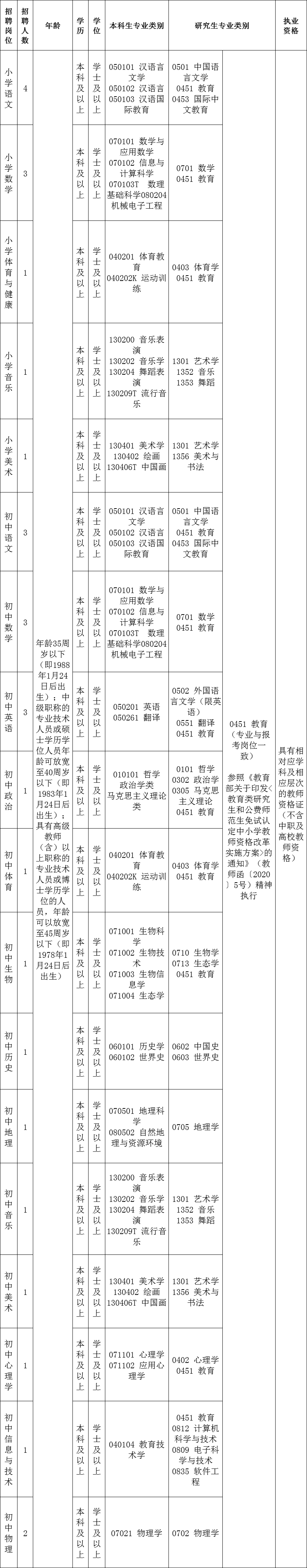 6.年龄35周岁以下(即1988年1月24日后出生);中级职称的专业技术人员或硕士学历学位人员年龄可放宽至40周岁以下(即1983年1月24日后出生);具有高级教师及以上职称的专业技术人员或博士学位的人员,年龄可以放宽至45周岁以下(即1978年1月24日后出生);