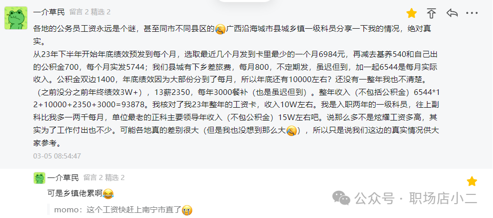 今天分享的案例,就是之前分享广西桂林某县城公务员薪资待遇时,一位网友匿名留言分享的自己真实情况,不过是不是真实,无从验证。