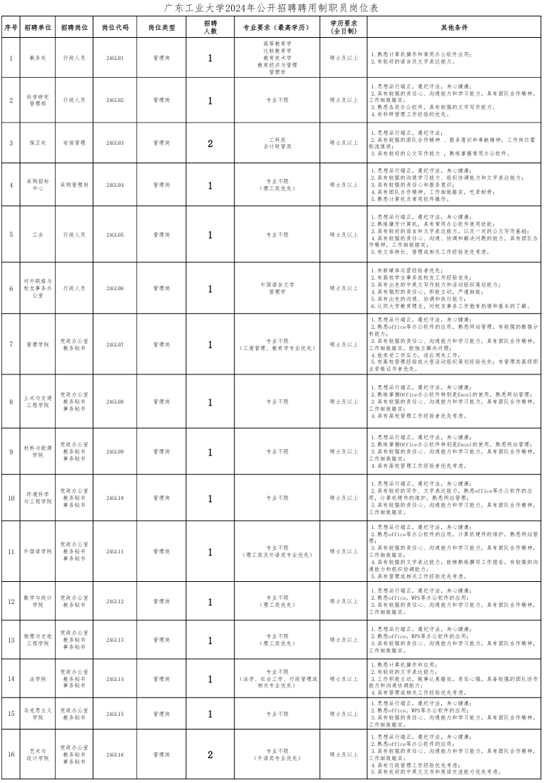 2、广东工业大学2024年公开招聘聘用制职员信息采集表(附件3);