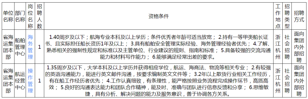 符合岗位招聘条件者,请点击岗位名称进行投简报名,或以“应聘岗位+姓名”为邮件名称将岗位应聘表(见附件)、身份证、学历学位证书、资格证书、职称证书、荣誉证书、船员服务簿等相关材料电子版发送至应聘邮箱。