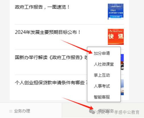 关注“孝感人社”,提交加分申请(申请填报开始时间为:3月7日9:00),步骤如下——