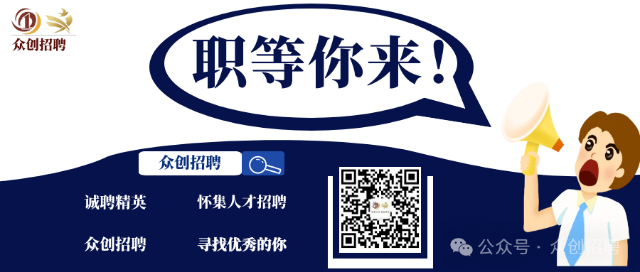 ▍免责声明:本文由众创招聘发布,由于部分内容无法核实出处,如有侵权,请及时联系,我们将会在24小时内删除处理,敬请谅解,谢谢合作。