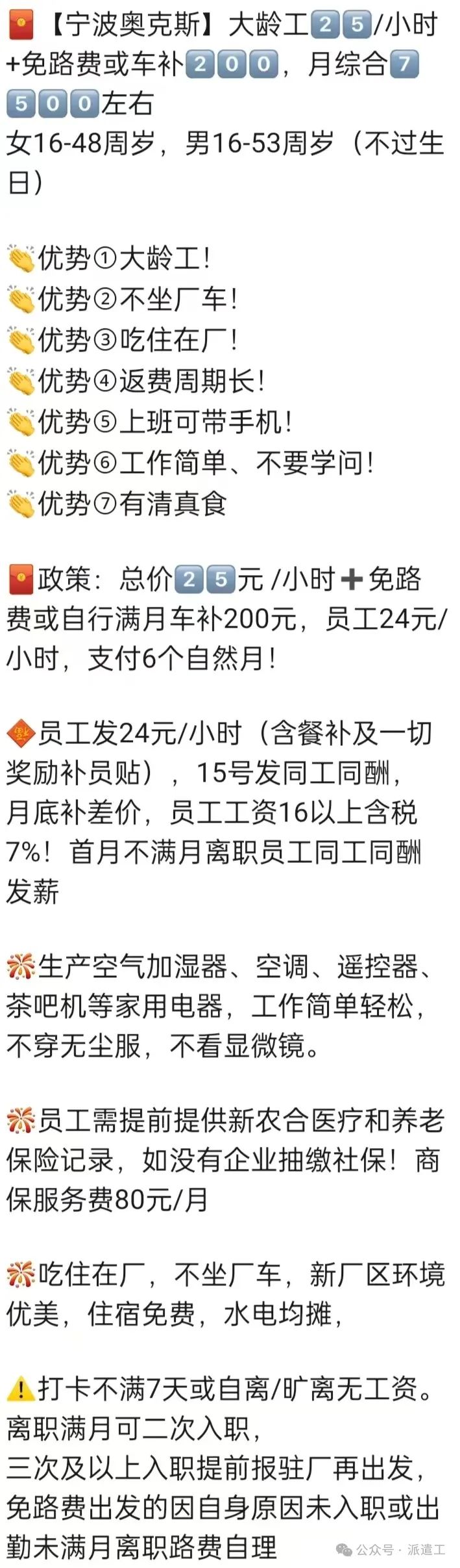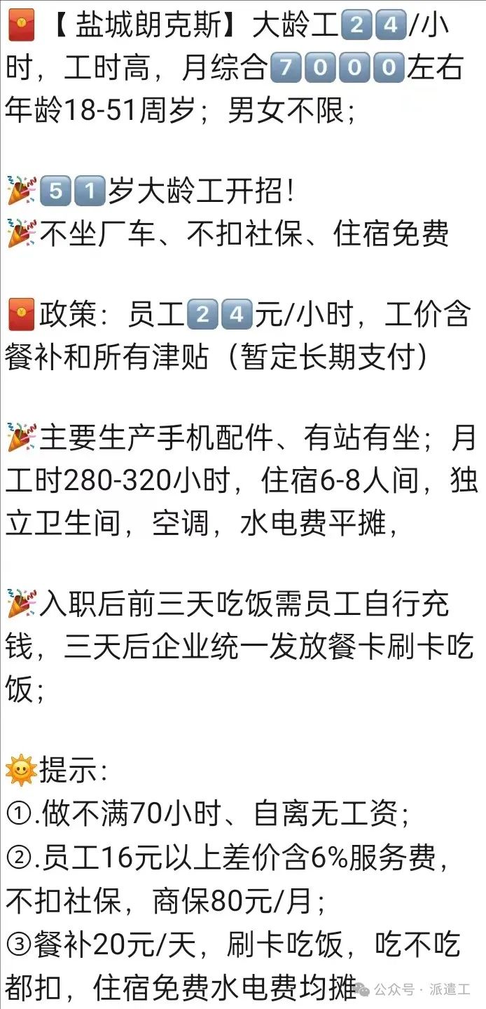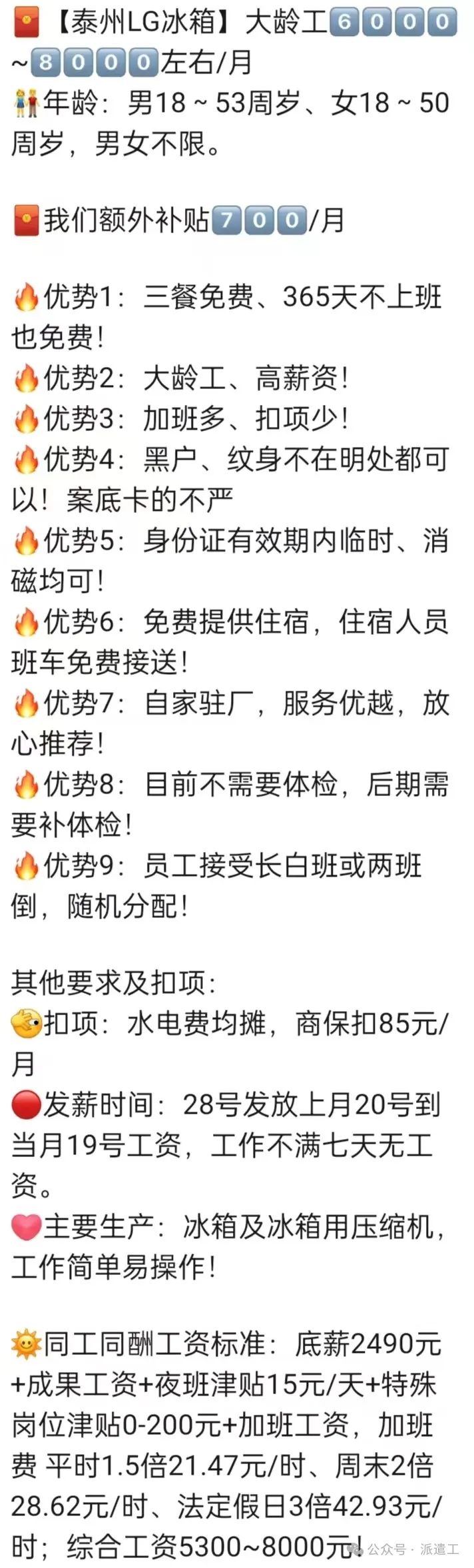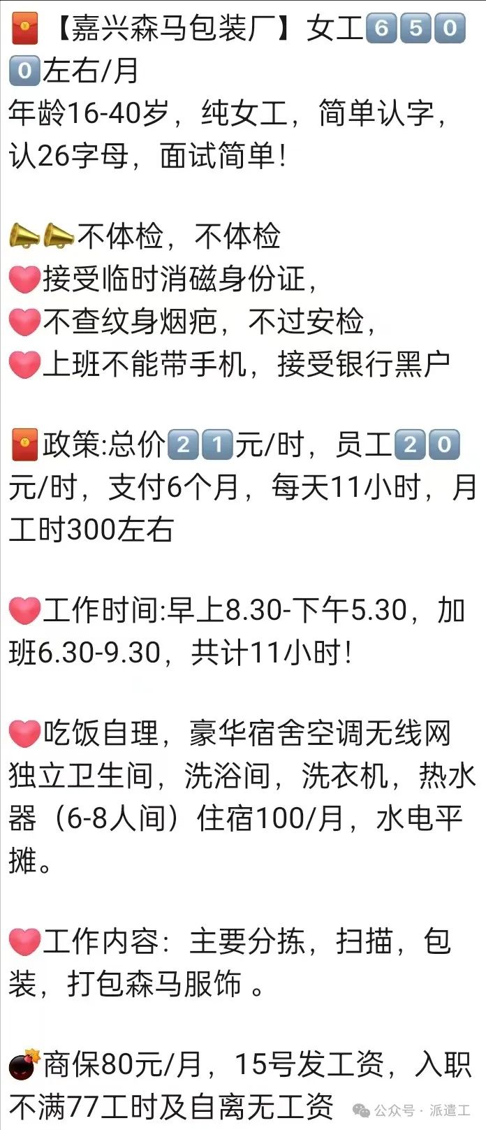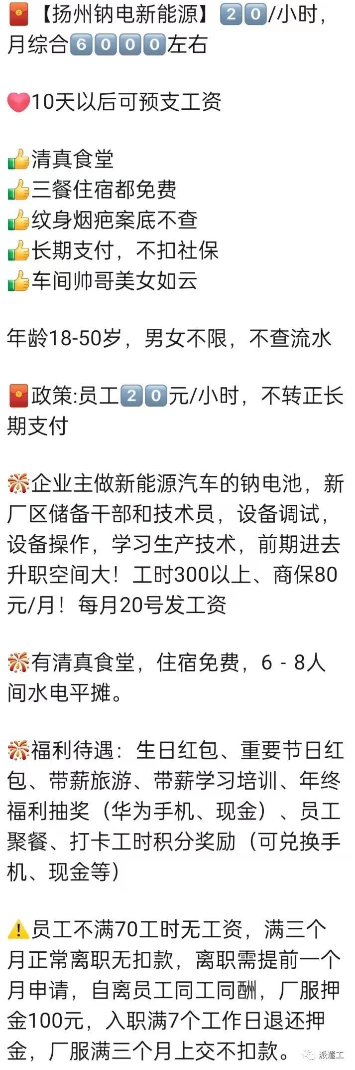 💰前60天员工打包价29元/小时(同工同酬工资+差价补贴)差价补贴需要满足员工差价补贴发放标准(以亿签网为准)【二次补贴】员工做满90天后,前60天按打包价29元/时(四川户籍27元),后30天按打包价20元/小时(四川户籍18元)一次性补足剩余差价,超出为个人所得,打包价包含同工同酬工资和厂区的所有补贴【面试当天算工期,旷自离无所有费用,入职后下产线计算工时,入职下产线后计算工时,离职需正常办理。】【特别说明】报备名单时按员工实际单价进行报备,禁止与员工私下再行约定返费,如有约定且隐瞒此消息,将承担给派遣公司造成的所有经济责任!2、工期满后根据厂区订单情况再具体出相关留任政策。2、身体健康,无明显纹身,体内不带金属(体检费50元,住宿钥匙压金20)5、提示!提示!所有人工友工资从下产线开始计算工时。【武汉富士康】
