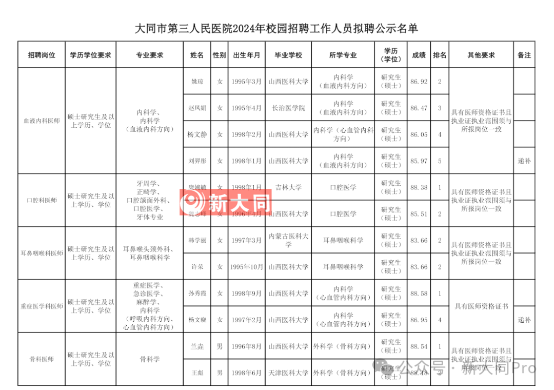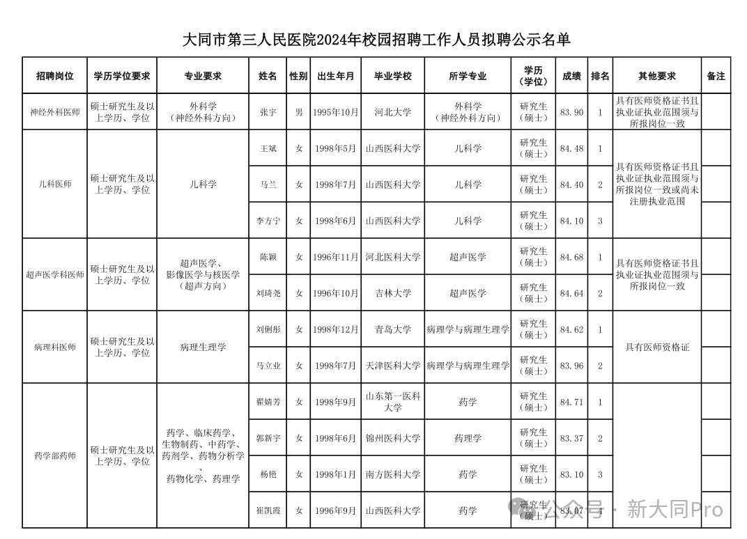 附件:大同市第三人民医院2024年校园招聘工作人员拟聘公示名单.pdf