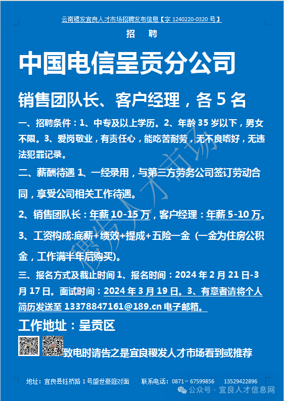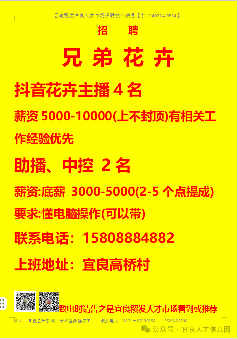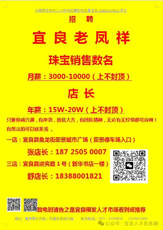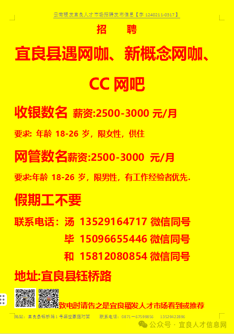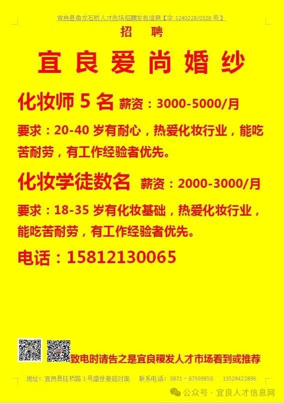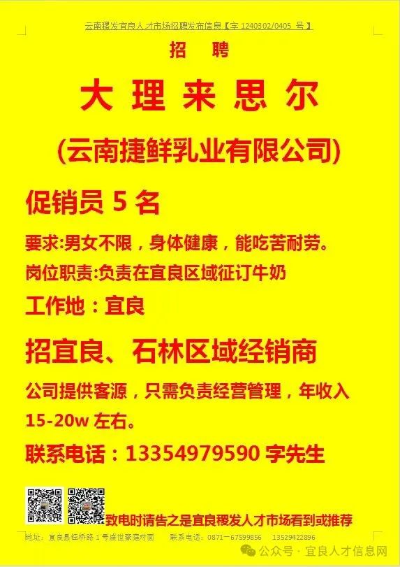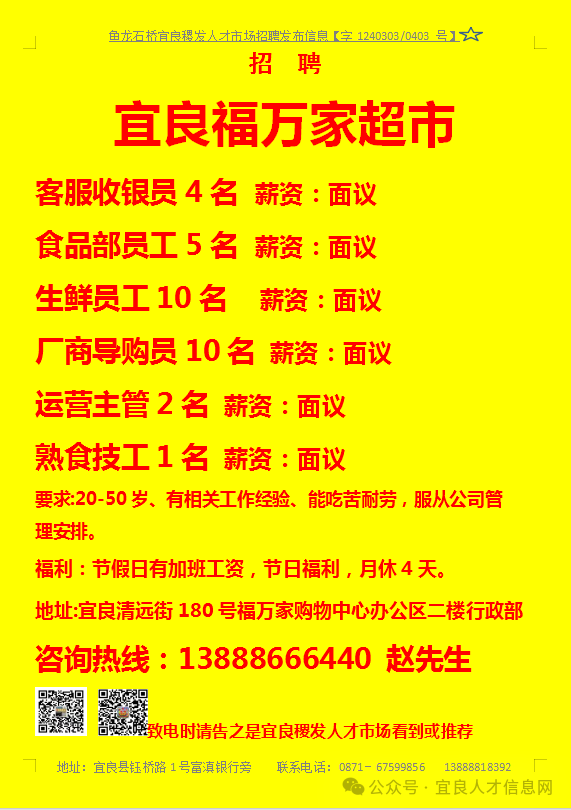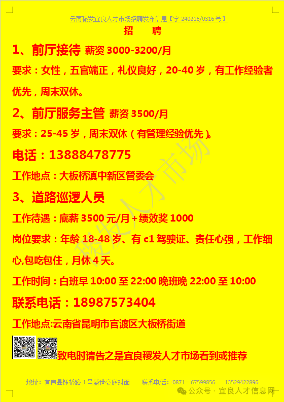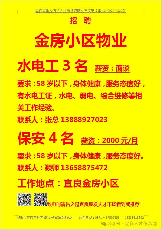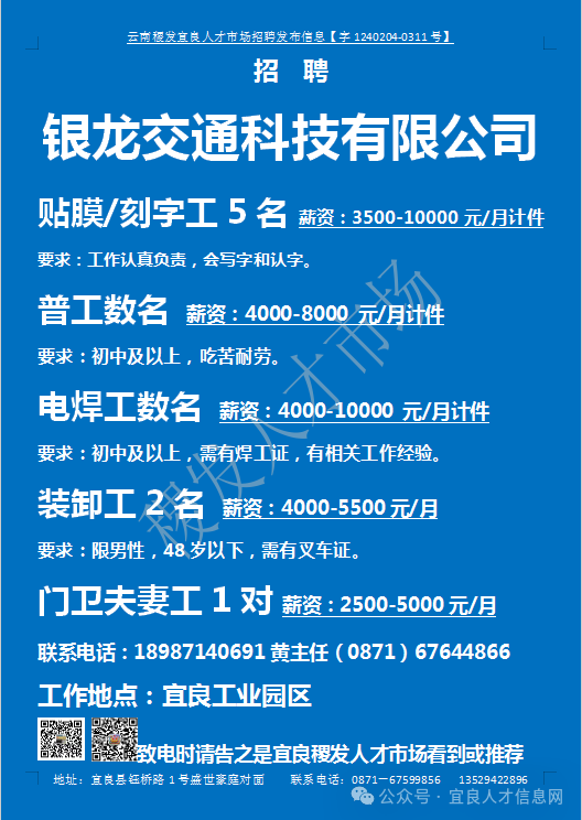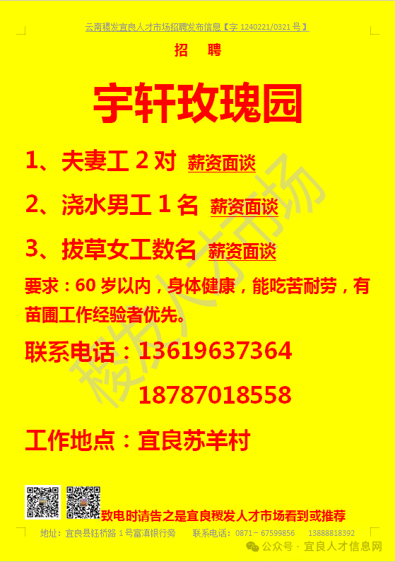信息发布咨询地址:宜良稷发人才市场一楼大厅