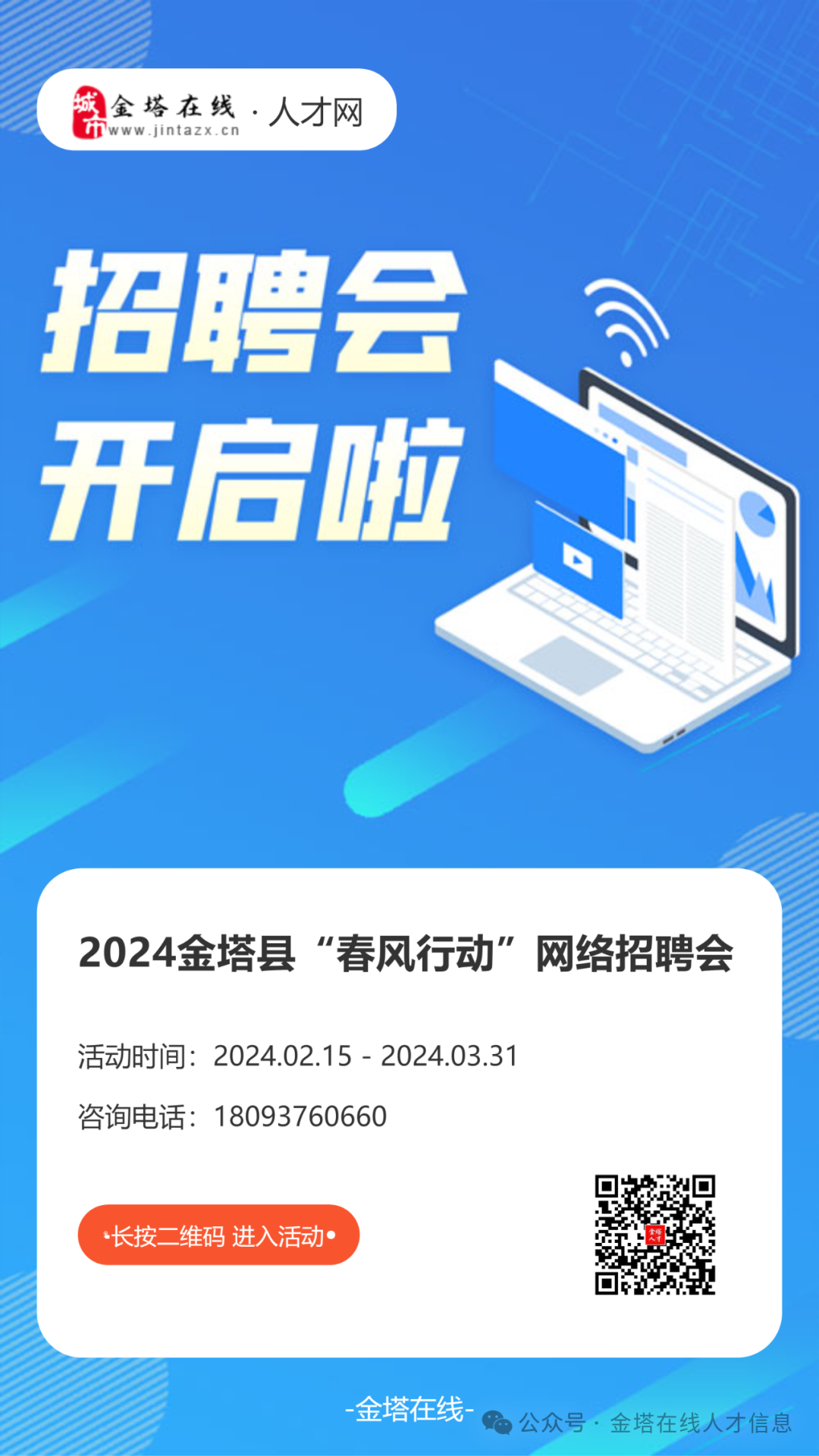 找工作难,找到适合自己的工作更难!同样我们金塔的各位企业老板也面临一样的问题,都在想方设法的找到合适的人才 金塔在线人才频道小编特意联系了这些企业老板,精心收集筛选了一批近期金塔急聘信息,推荐给广大求职者,你可以看看是否有合适自己的工作!有亲戚朋友也在找工作的记得帮我们转发分享哦!