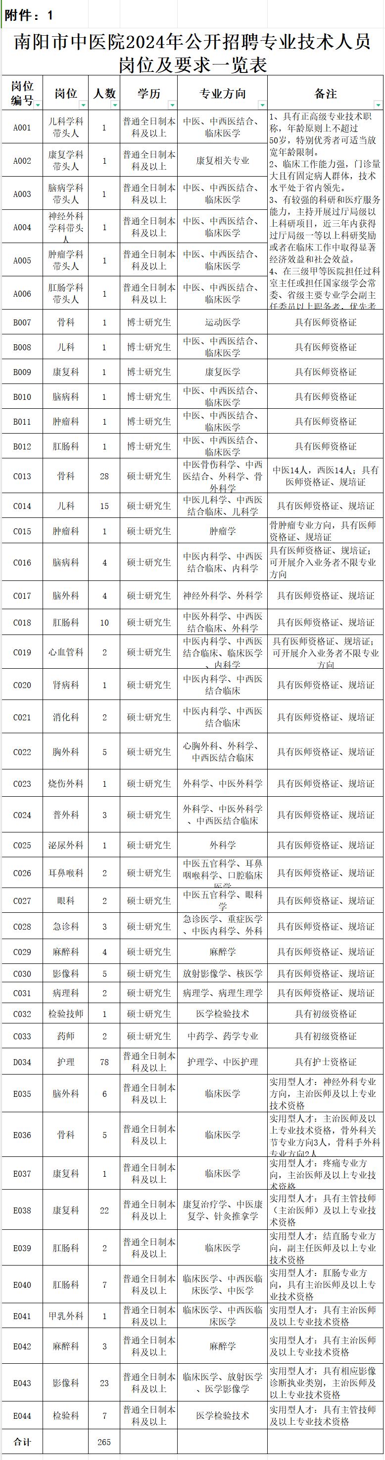 附件1:南阳市中医院2024年公开招聘专业技术人员岗位及要求一览表(1).xlsx