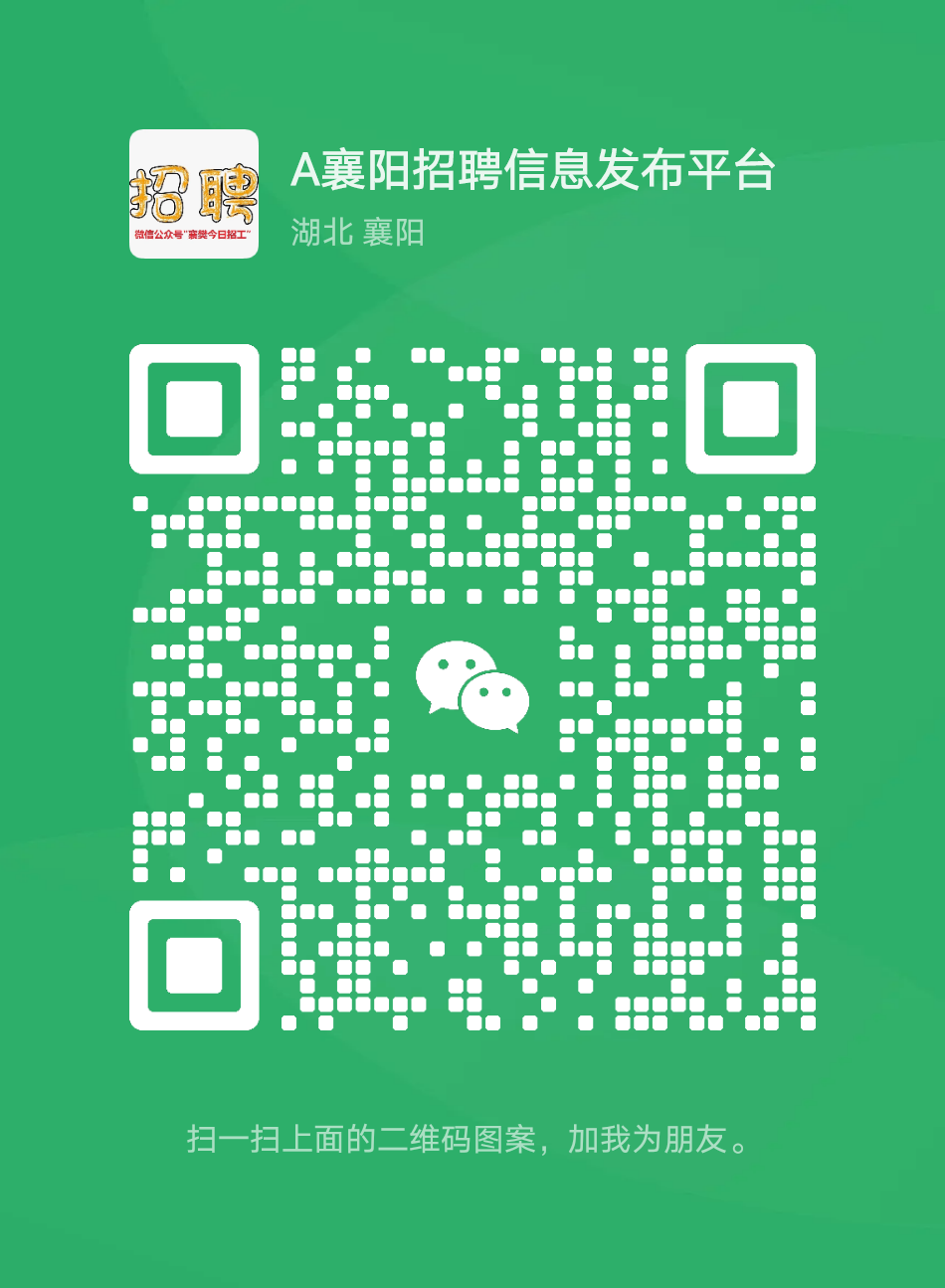 请大家帮忙转发本公众号给,需要找工作的朋友,以方便更多的朋友找到合适的工作,请将此段发给朋友:找工作请关注微信公众号“襄樊今日招工”