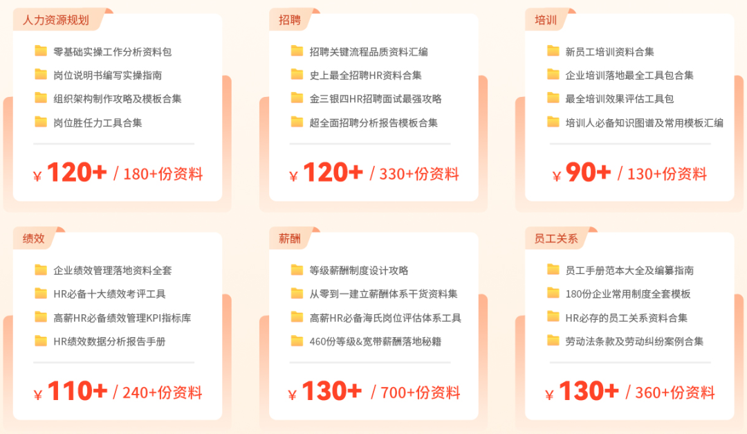 当然,可以下载的资料远远不止这些(但也不是全平台免费),平台上有大量、全面、实用的HR资料供会员下载,6大模块应用尽有,拿来即用!
