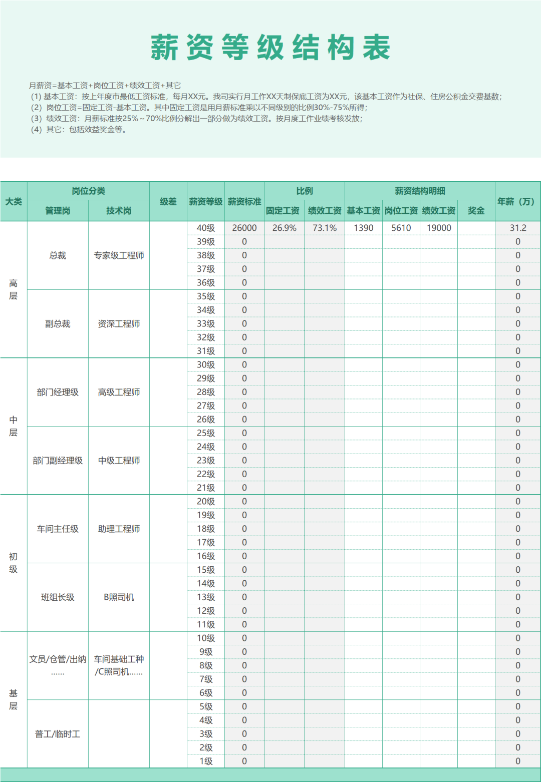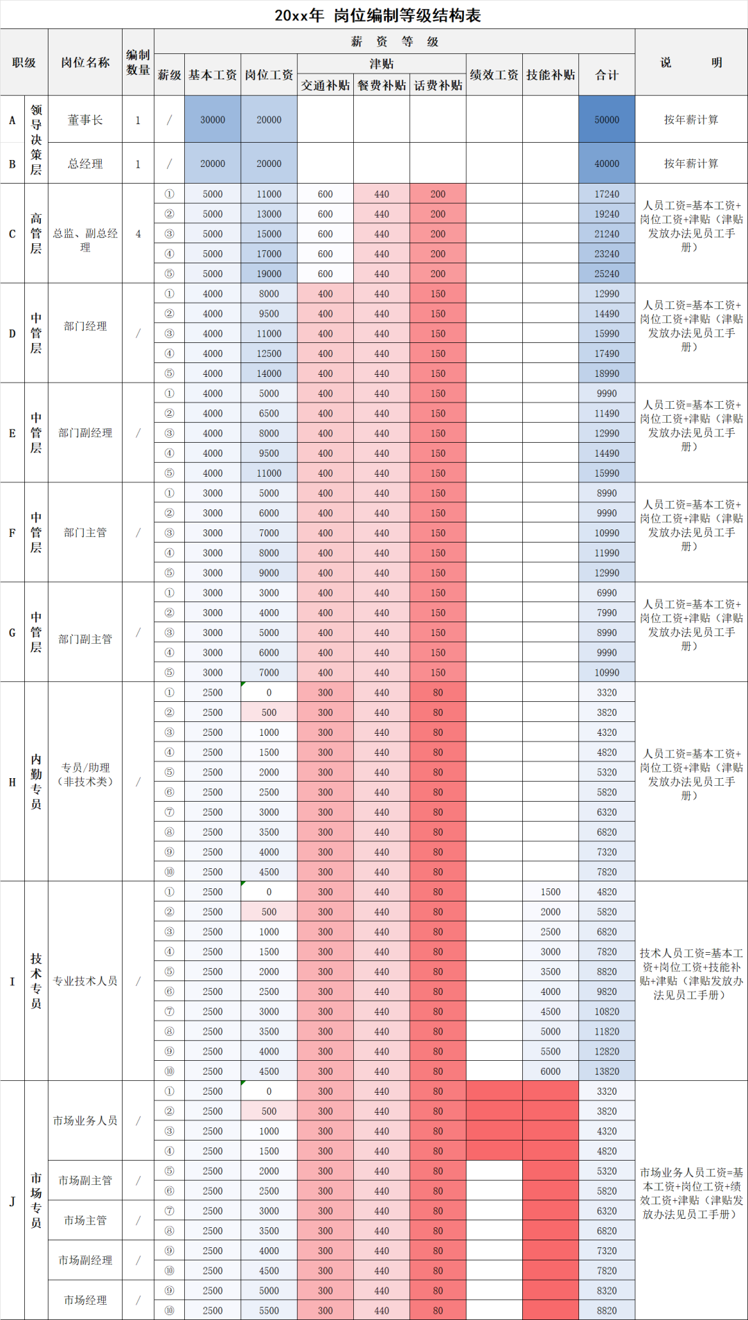 销售部岗位薪资标准及薪资结构、岗位薪酬体系结构表等等