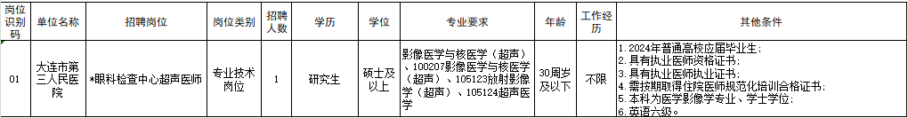用人单位:大连市第三人民医院
