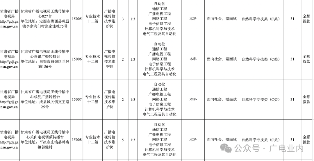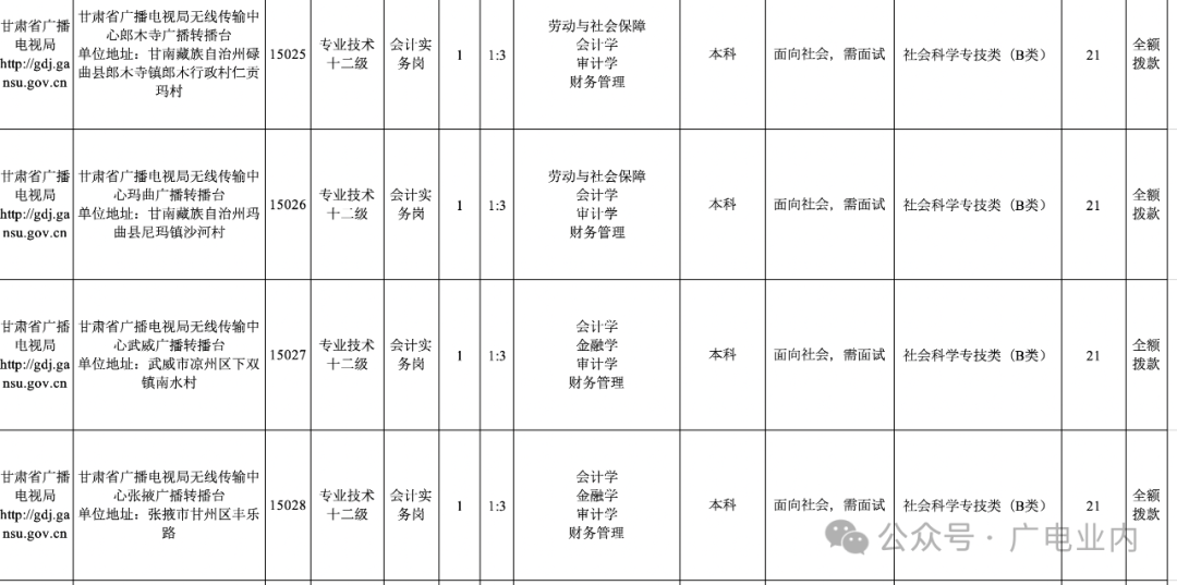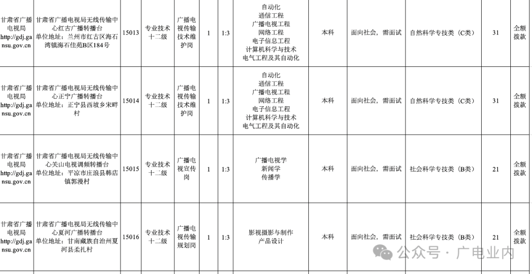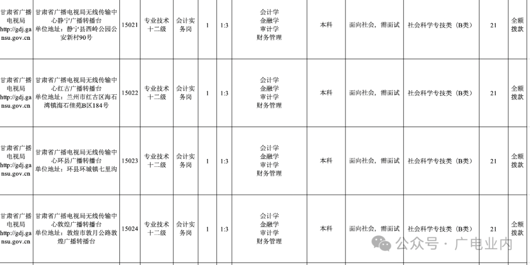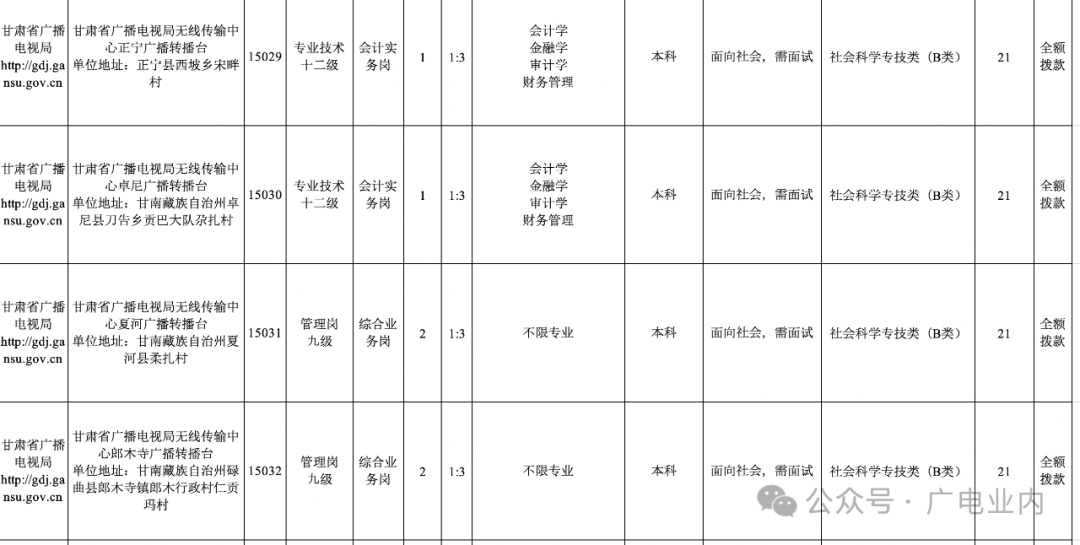 附件1:甘肃省广播电视局2024年事业单位公开招聘岗位列表