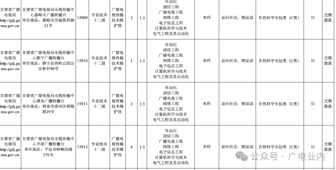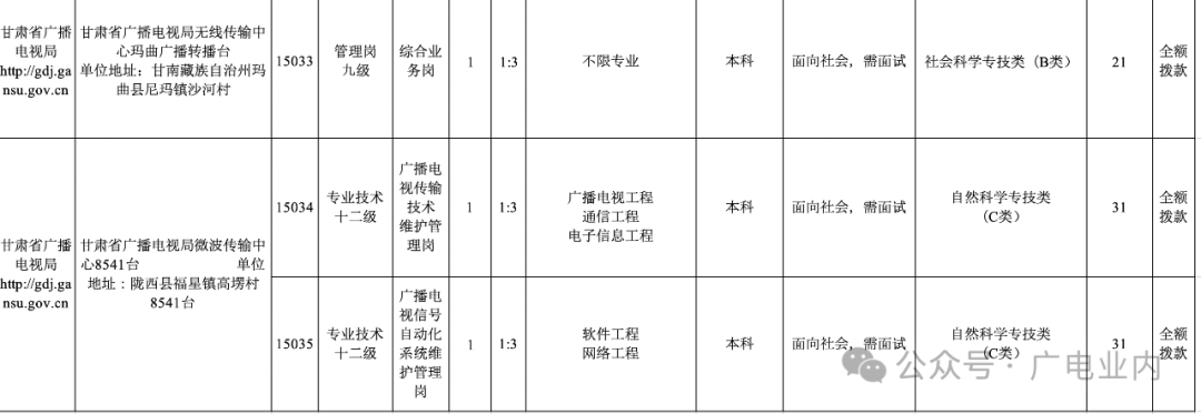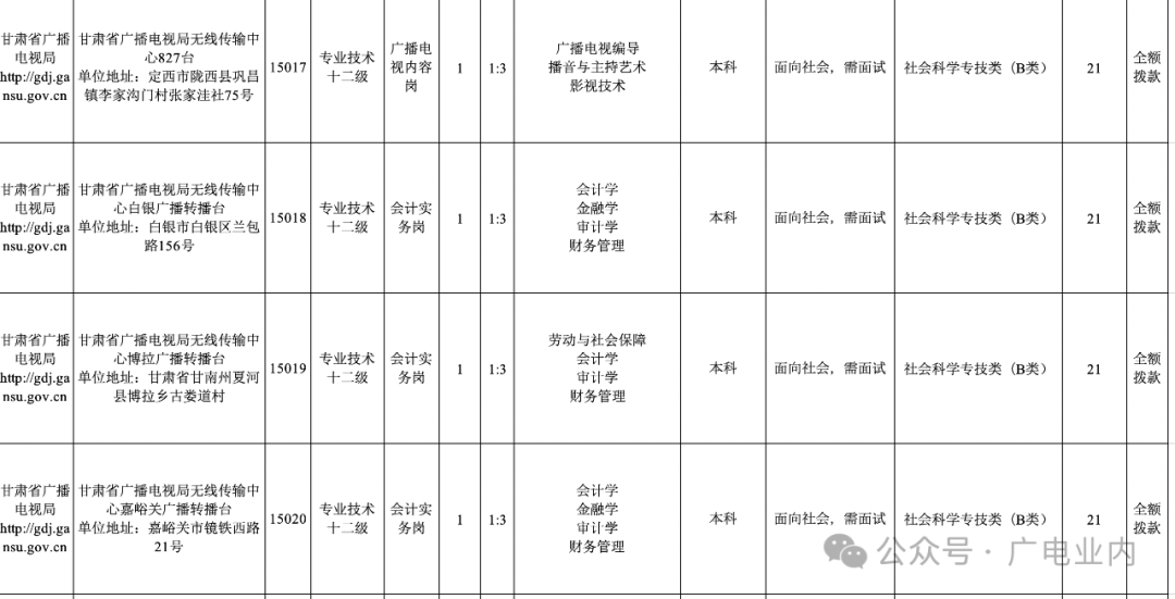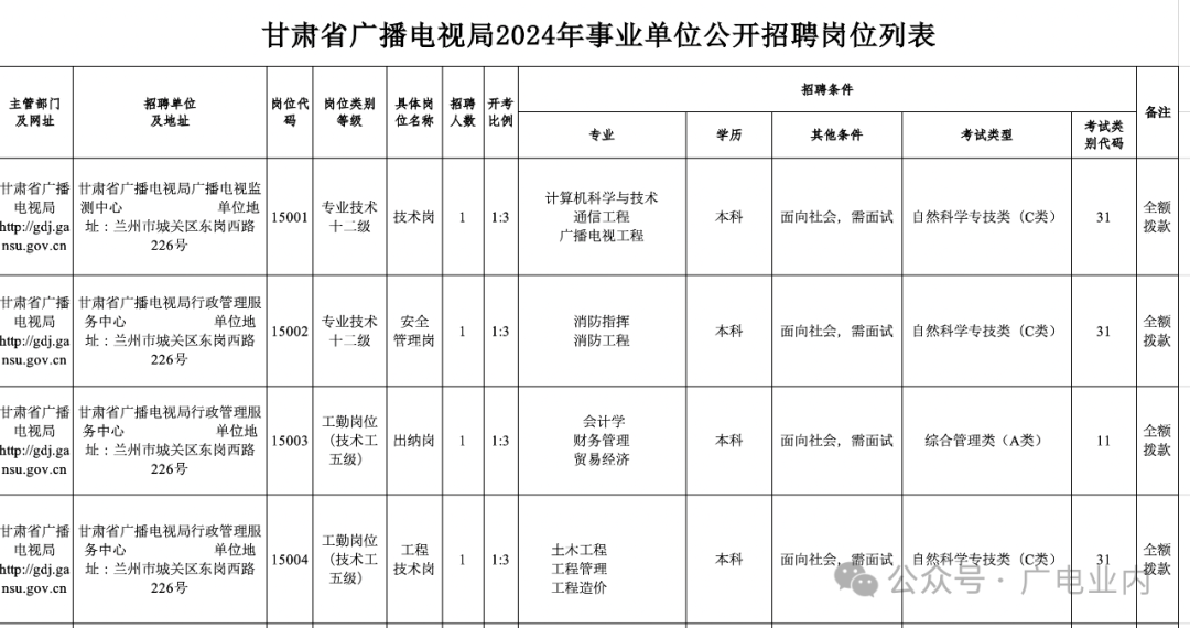 甘肃省广播电视局2024年事业单位公开招聘工作人员公告