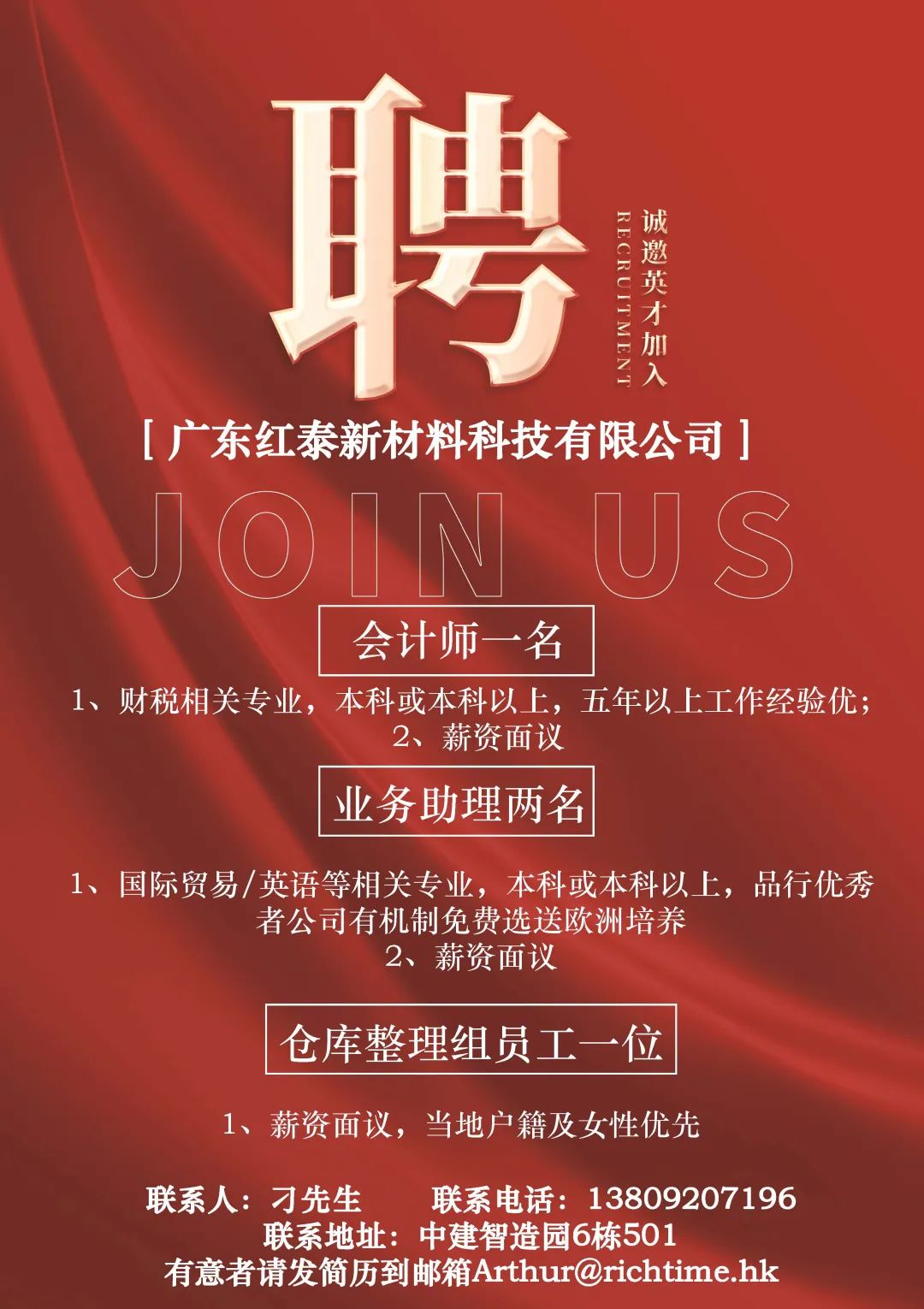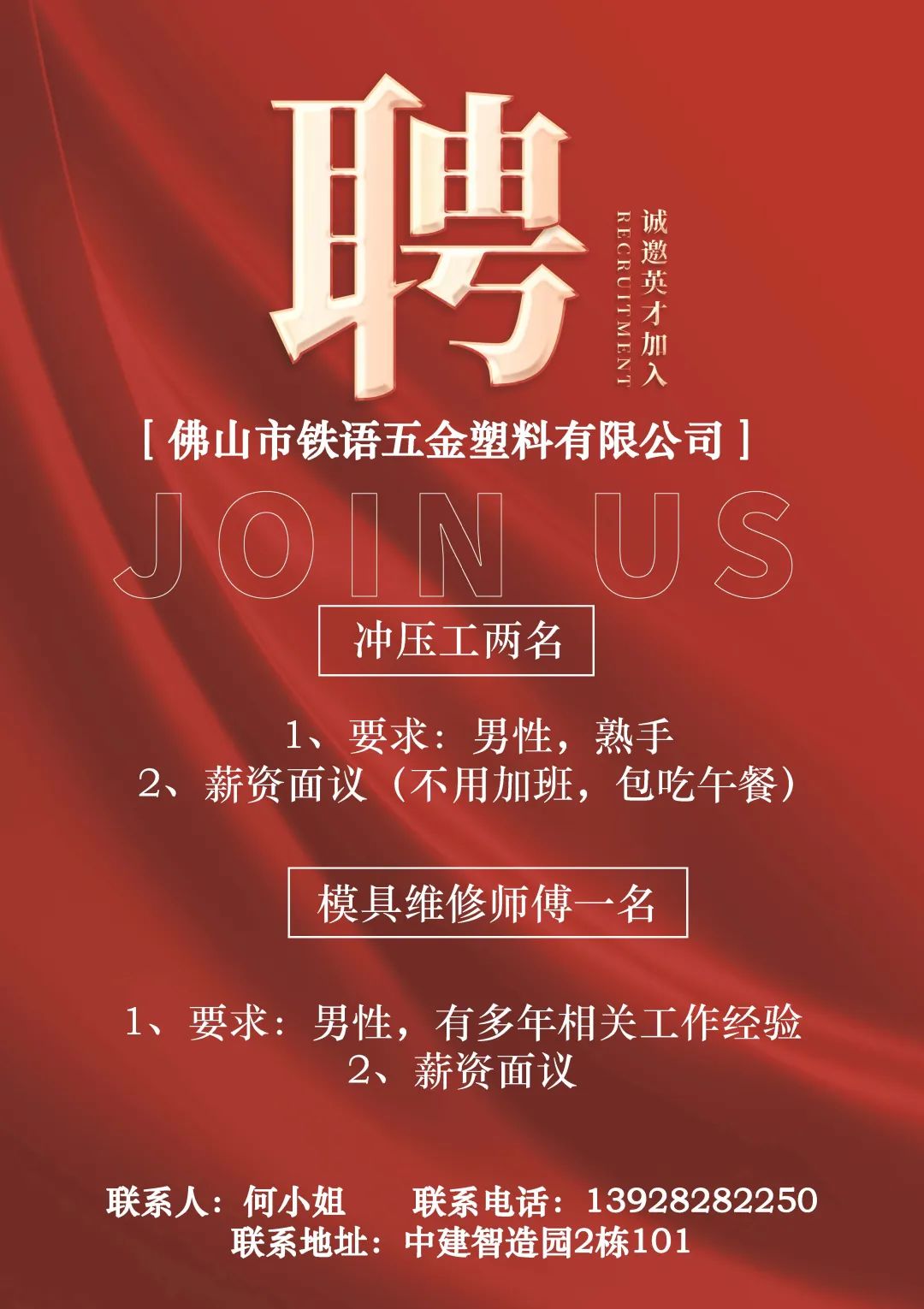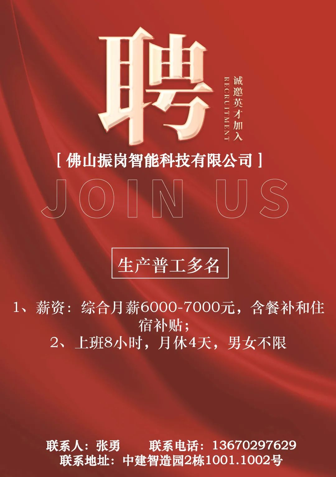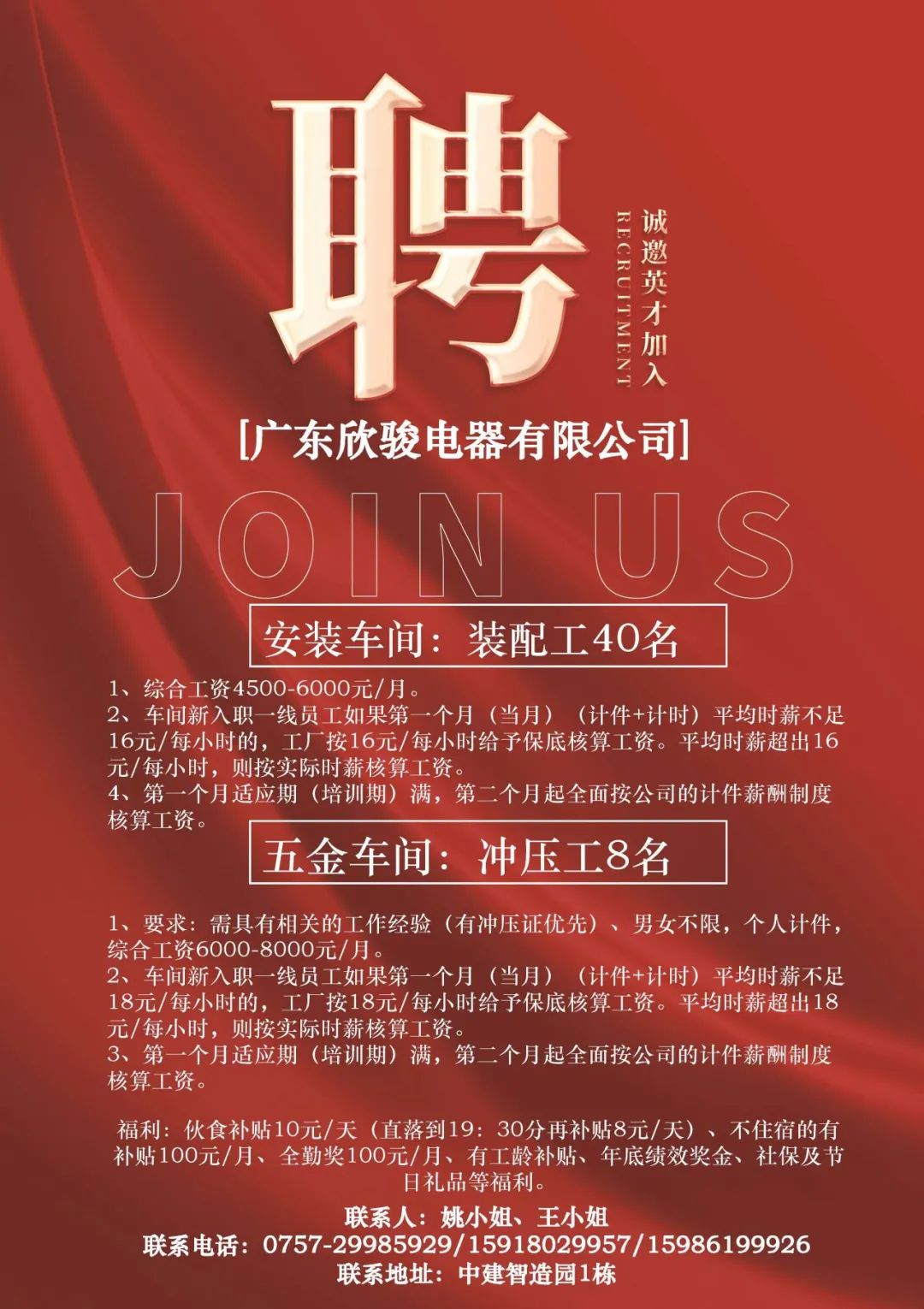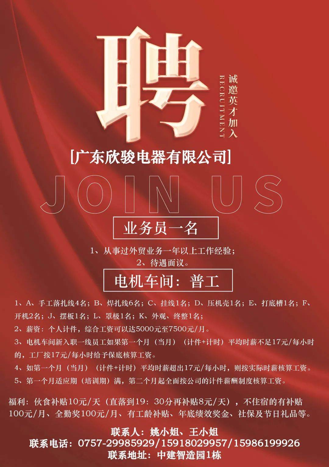 【桃源】鹤山市骏利实业有限公司诚聘文员,普工,临时工