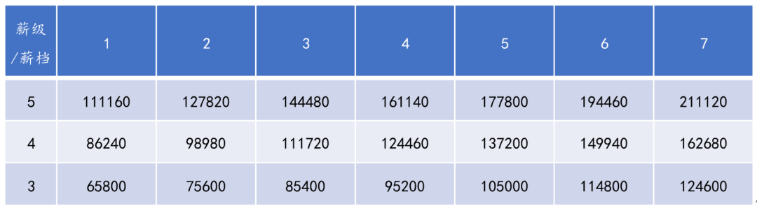 虽然很多员工吐槽企业存在薪酬倒挂,对于企业来说,首先要做的并不是马上去解决薪酬倒挂,或者马上让薪酬倒挂现象消失,而是澄清薪酬倒挂的概念,理解员工不满的根源。 薪酬倒挂在薪酬管理的语境中存在一个似是而非的界定。是所有新人比老员工薪酬高就是倒挂,还是不合理的“高”,才是倒挂? 从员工不满的角度而言,显然后者才是。如果我们再深入思考,员工不满的,也并不是薪酬倒挂,而是企业薪酬规则或薪酬管理的不公平性、不合理性——尽管有些时候,这种“不公平、不合理”只是员工的感知。 由此,我们认为,解决薪酬倒挂,或者解决员工对薪酬倒挂现象的不公平感问题,需要分两步实施。 第一步:构建能力导向的薪酬体系,让员工的认知合理化。 设计薪酬体系或每年的薪酬方案更新时,都需要跟所有员工强调,本企业的薪酬定位依据是什么——看重资历,看重能力,看重贡献,或者兼而有之? 从最佳激励效果角度,我们建议,薪酬的定位应遵循能力导向,而且这种导向要清晰的向员工传达。 如表1截取的部分薪酬体系表所示,每一列上下的数字代表了薪级差异,每一行左右的数字是薪档差异,代表了同一职级中不同员工的薪酬差异。 同一薪酬等级中,不同员工定位在不同的薪酬档位上,应该基于对能力的综合评估。同一岗位上的一个新员工入职,如果薪酬水平所处档位高于原有员工,应该是基于对于其能力的评估高于原有员工,而不是仅仅因为他是新员工。这样的导向,应该向所有员工清晰的传达。 ◎表1. 薪酬体系表示例 需要向员工传达的,除了能力导向,还有对于能力的评估方式。让员工真正获得对于高薪酬新人能力的认同,也让员工清楚自己努力的方向。
