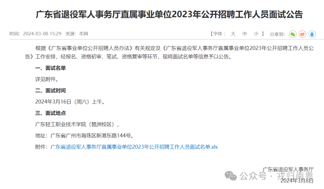 广东省退役军人事务厅直属事业单位2023年公开招聘工作人员面试名单