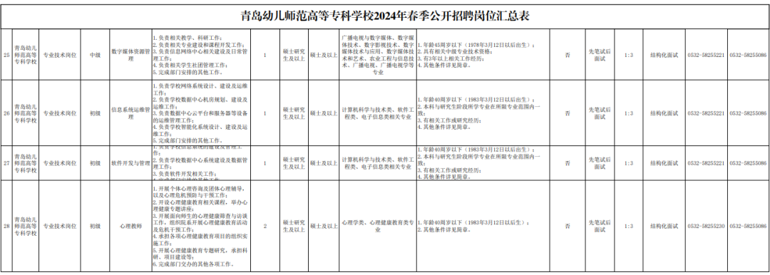 根据事业单位公开招聘有关规定,学校2024年春季公开招聘根据岗位区分考试方式,考试形式见《岗位汇总表》。