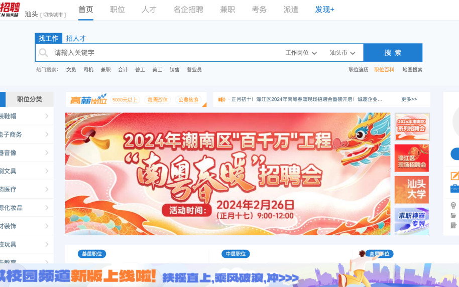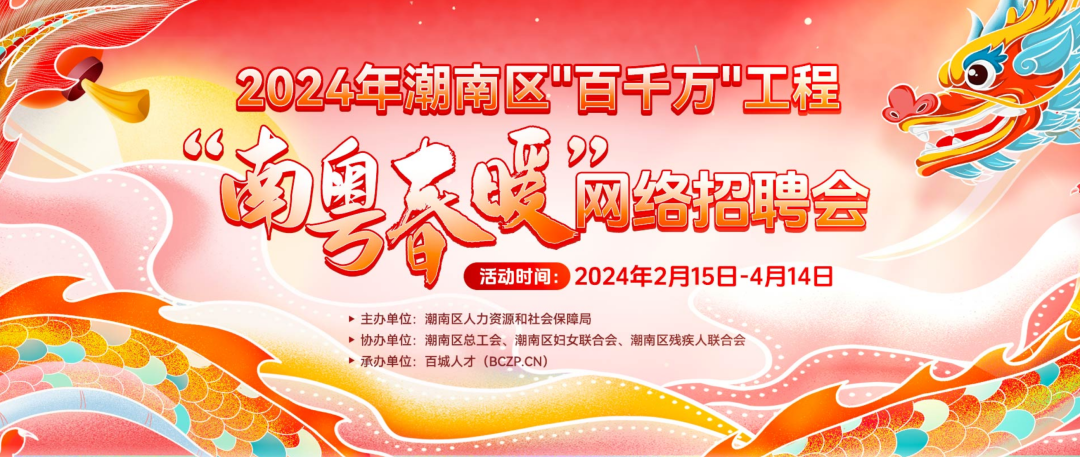为深入贯彻党的二十大精神,稳定市场主体稳就业决策部署,落实党的二十大报告中提出的“实施就业优先战略、强化就业优先政策”的“双优先”理念以及市委市政府“工业立市、产业强市”“三新两特一大”工作部署,切实为广大潮南区企业和各类人才搭建就业服务平台,进一步缓解潮南区企业春节后用工紧缺问题,促进高校职业学校毕业生、城镇失业人员、外来务工人员等重点就业群体充分就业,潮南区人力资源和社会保障局将开展2024年潮南区“百千万”工程“南粤春暖”网络招聘会,诚邀广大求职者报名参会!