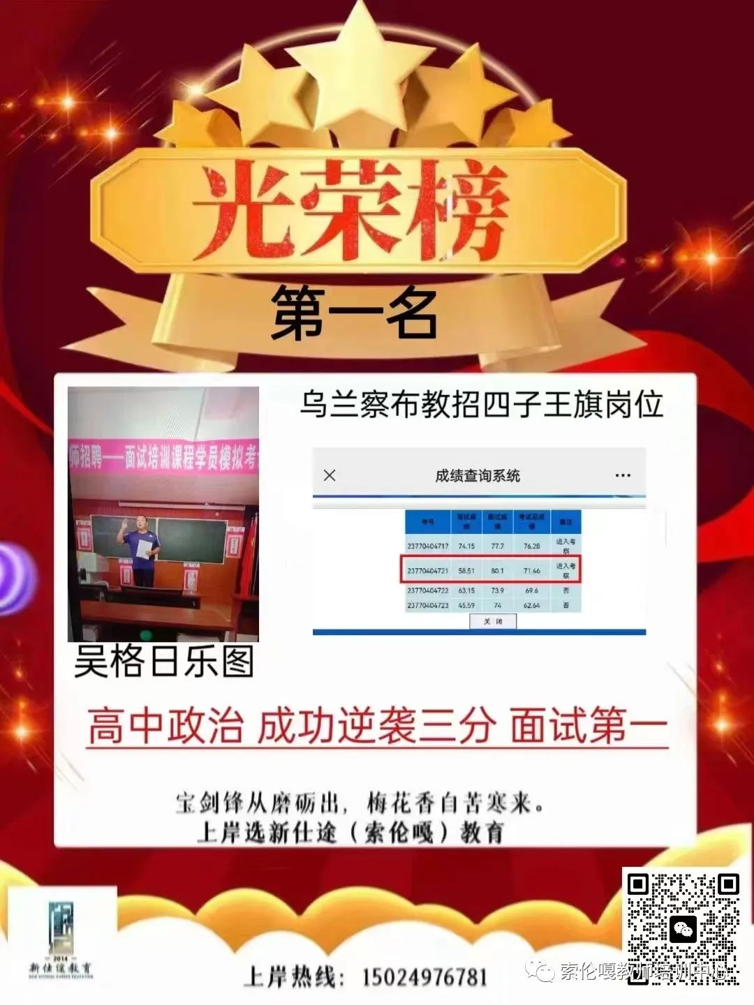 内蒙古新仕途教育培训学校成立于2014年至今、成功培训上岗1000++人民教师,学校坚持以学员上岸人生奠基为使命,始终把学员学习的意愿和培养能力放在第一位。十年以来,新仕途教育培训学校沉淀出了一套系统、扎实、成熟、稳定的教学体系,以卓越的教学成果深受学员的信赖。被誉为“教师上岸者的摇篮”!