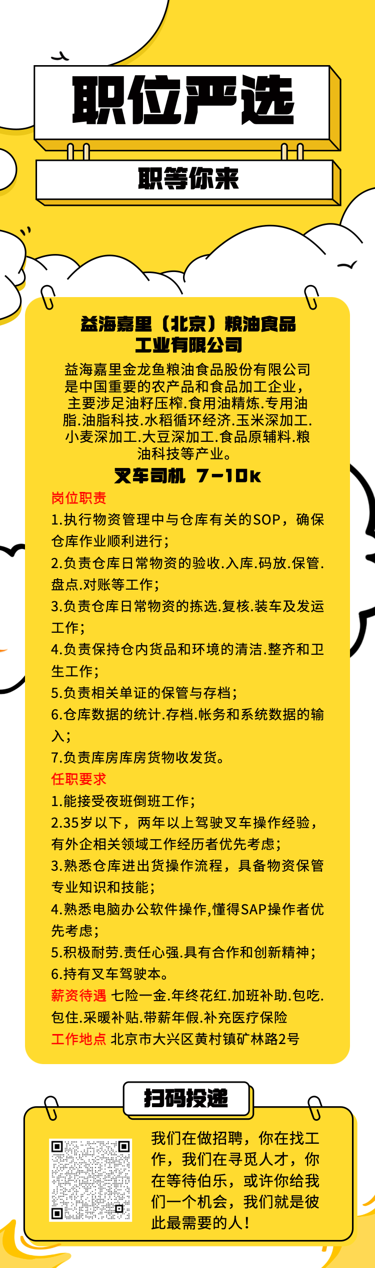 >【每日招聘】七险一金、年终花红、加班补助、包吃住、采暖补贴、带薪年假、补充医疗保险