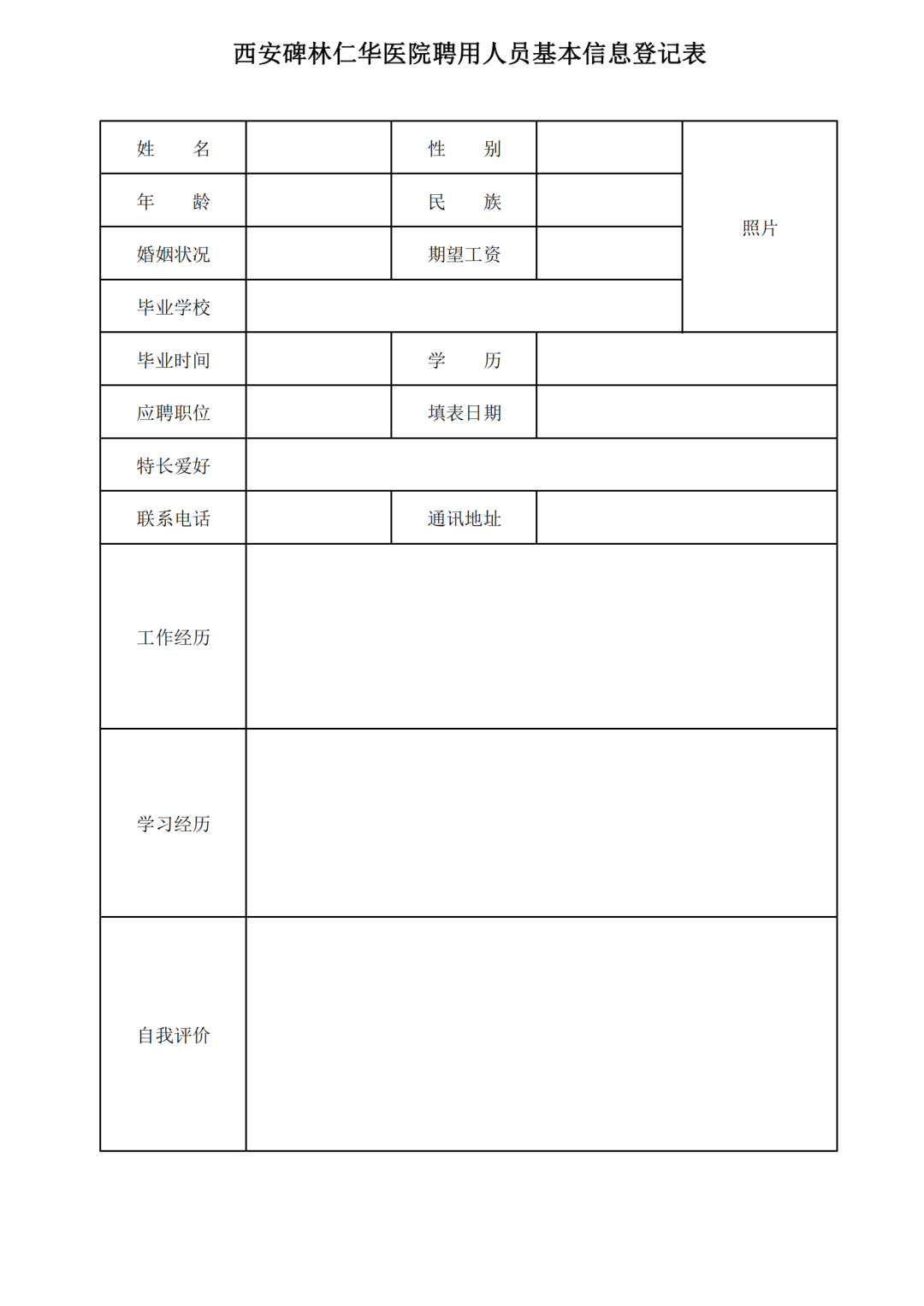 附件1:西安碑林仁华医院聘用人员基本信息登记表