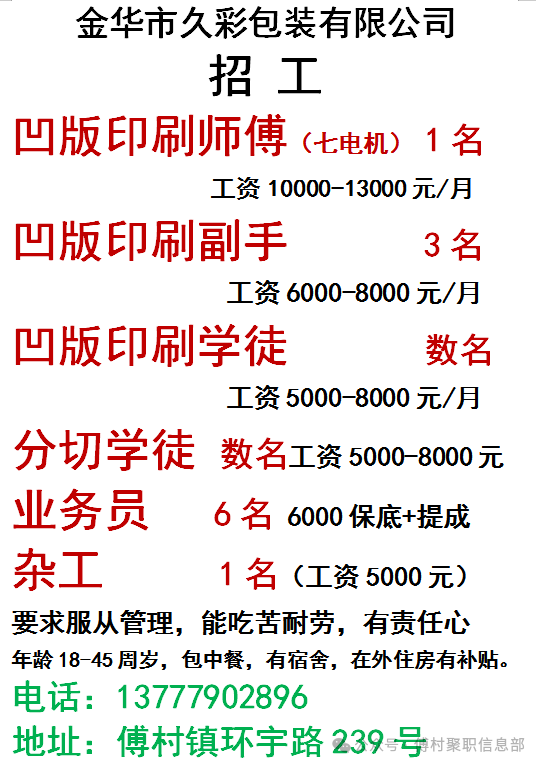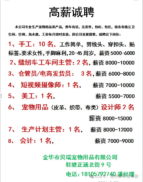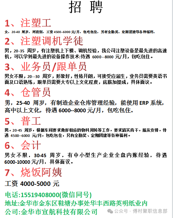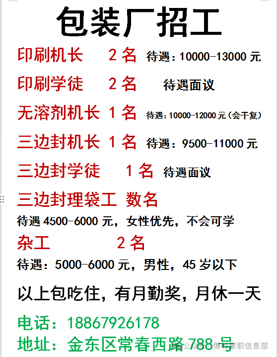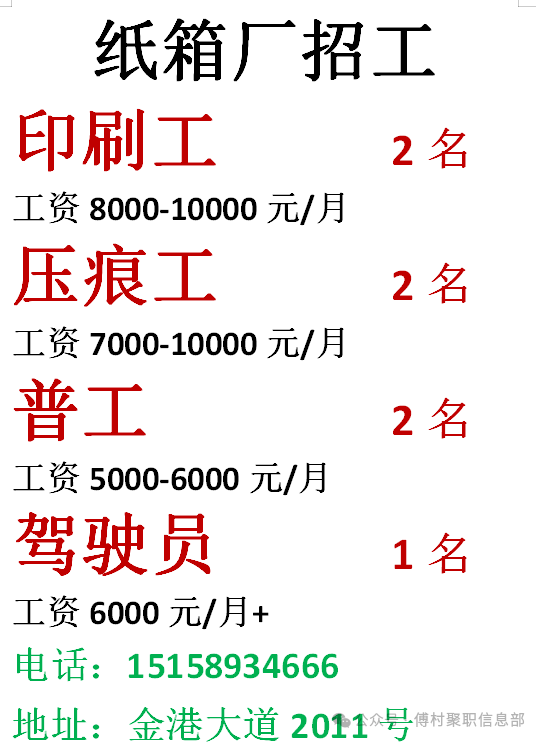 3月10号招工信息