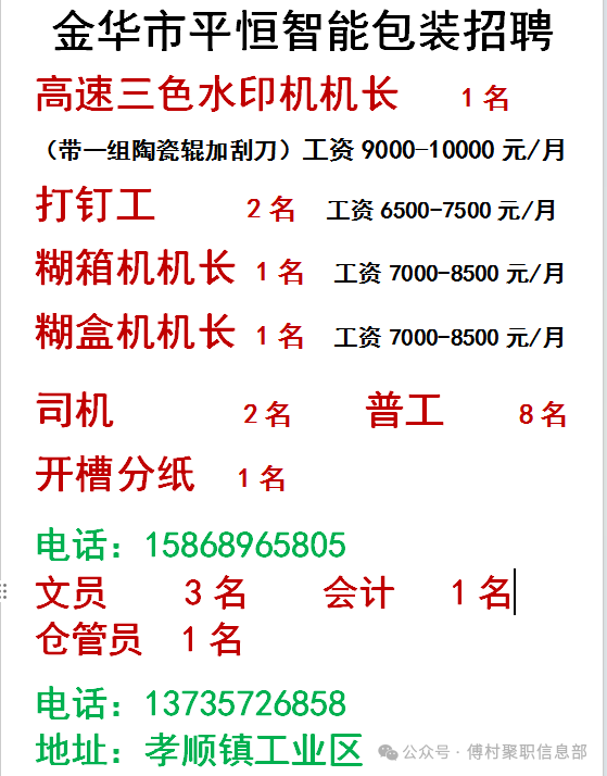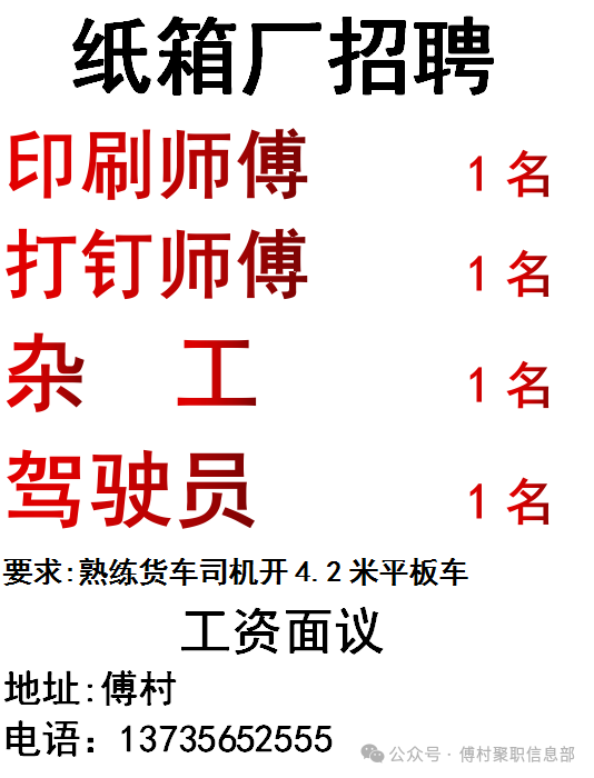 傅村邮政旁聚职信息部