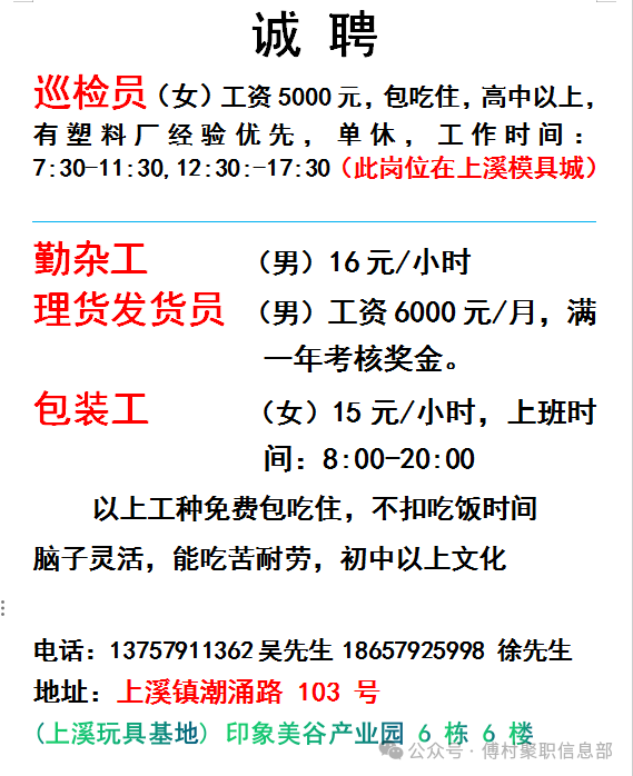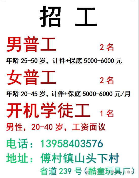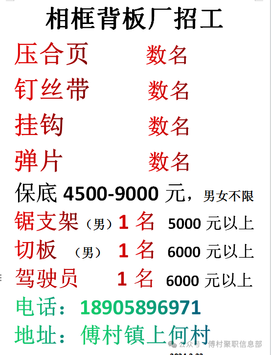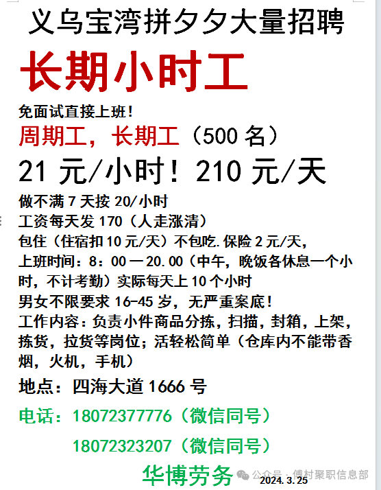 招 工3/24天天发置顶