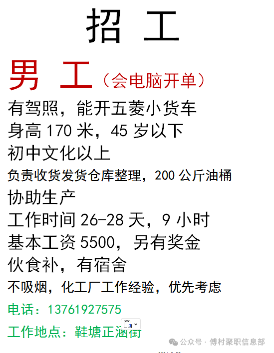 招 工天天发置顶3/16
