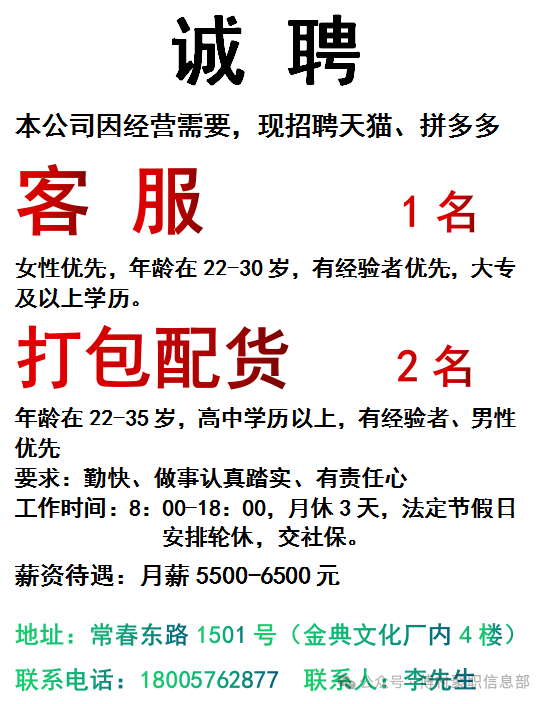 招 聘天天发置顶3/18