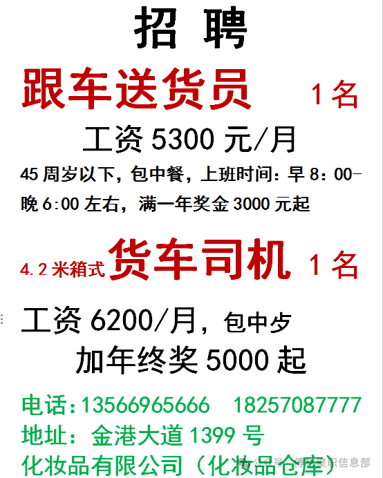招 聘3/12天天发置顶