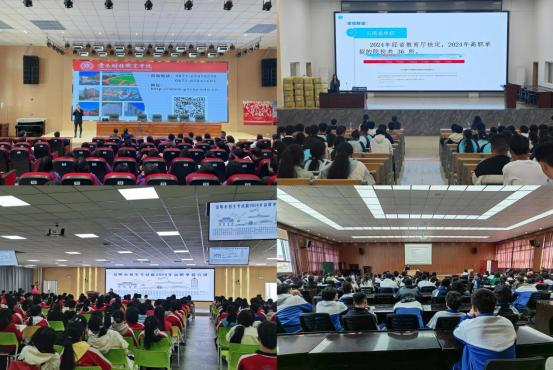 近日,为了切实做好 2024 年高职单招工作,我校受邀参加了由昆明市招生考试院组织的 12 所优质高职(专科)院校单独招生进校宣讲活动。此次宣讲活动为期 5 天,巡讲团成员由我校招生与就业指导处选派代表参与,共深入五华、盘龙、官渡、西山、呈贡、嵩明、寻甸、宜良、石林、富民、禄劝、安宁、晋宁、东川等共 14 个县市区,开设 56 场专场 宣讲,覆盖近 60 所高中,发放招生宣传材料近万份,为广大考生和家长搭建了信息交流平台。