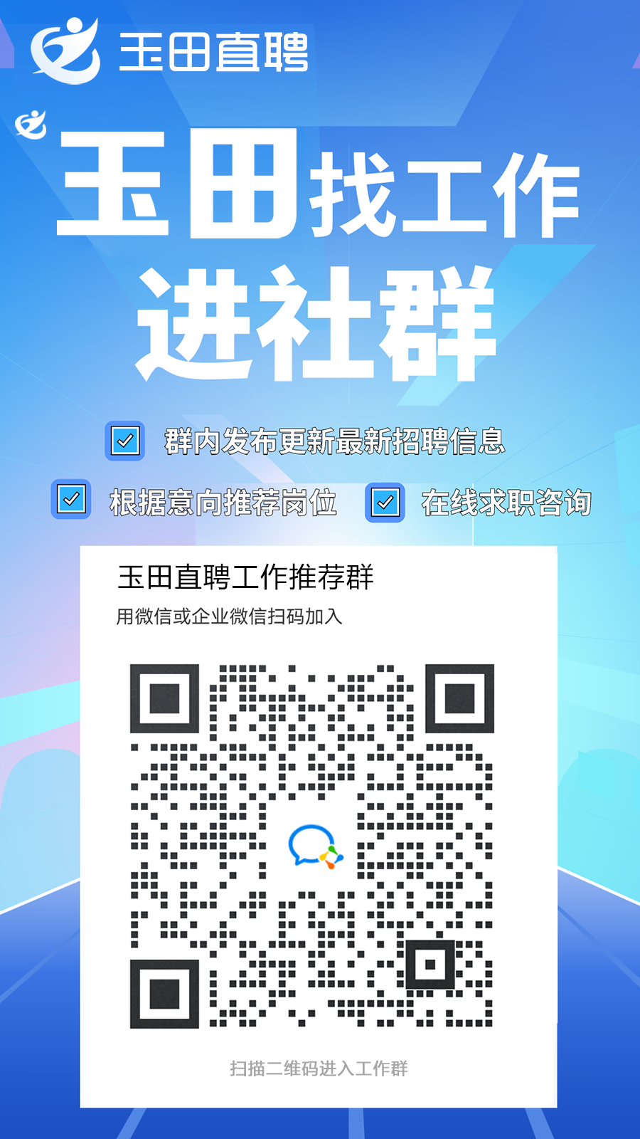 让客服拉你进入玉田直聘工作推荐群