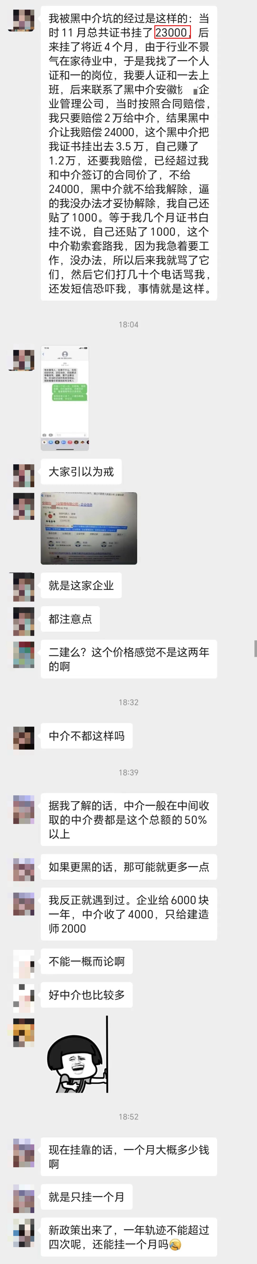 后来联系了黑中介安徽xiejun企业管理公司,当时按照合同赔偿,我只要赔偿2万给中介,结果黑中介让我赔偿24000,这个黑中介把我证书挂出去3.5万,自己赚了1.2万,还要我赔偿,已经超过我和中介签订的合同价了