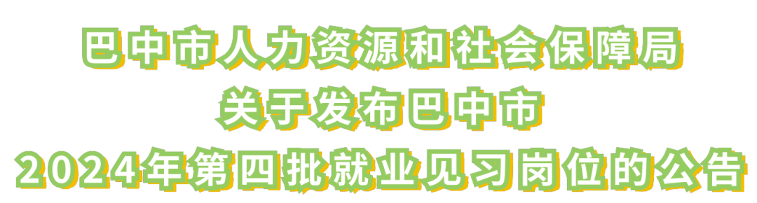 为积极帮助离校未就业高校毕业生等失业青年参加实践锻炼,积累就业经验,尽快实现高质量就业,现将巴中市2024年第四批就业见习岗位信息公告如下: