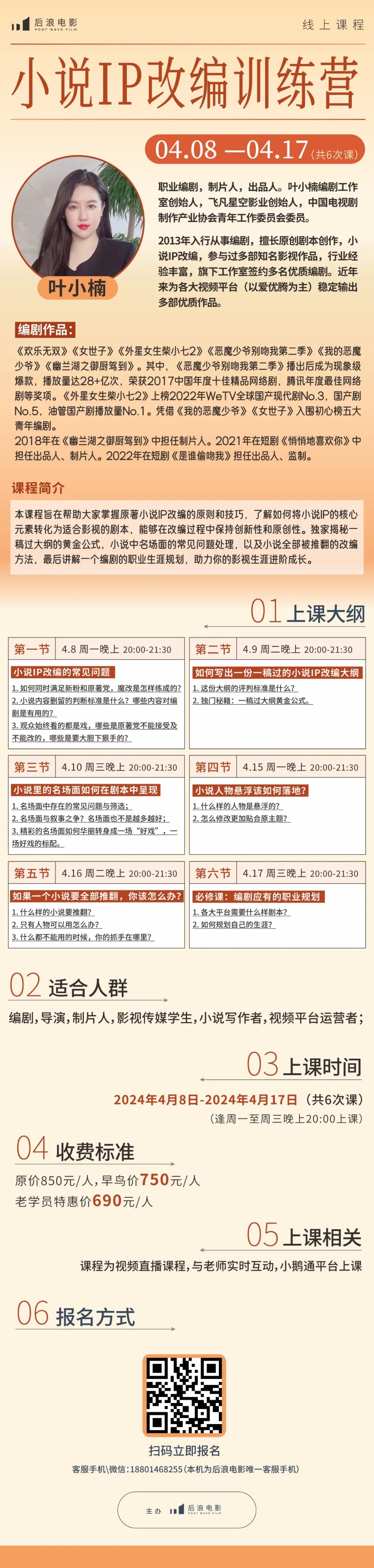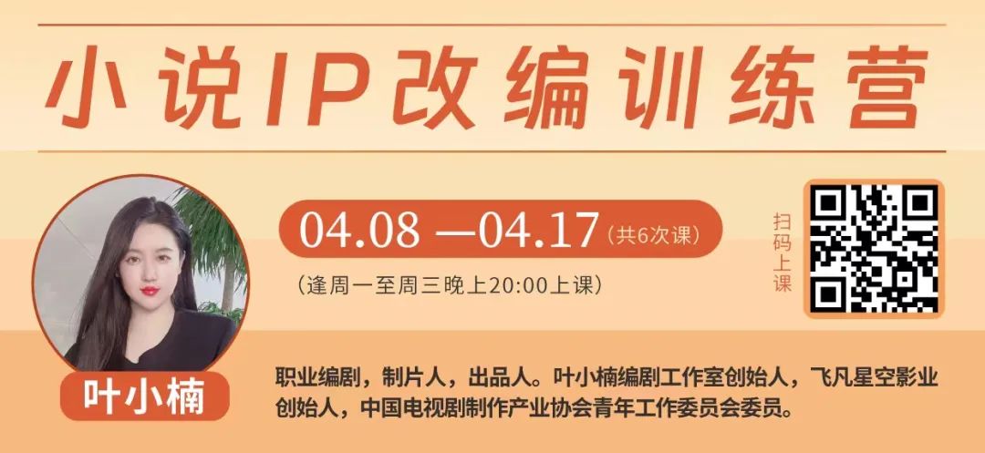 叶小楠小说IP改编训练营,3月5日-3月14日课程即将开班!如果想要报名或咨询课程相关信息,请速速dd我们!