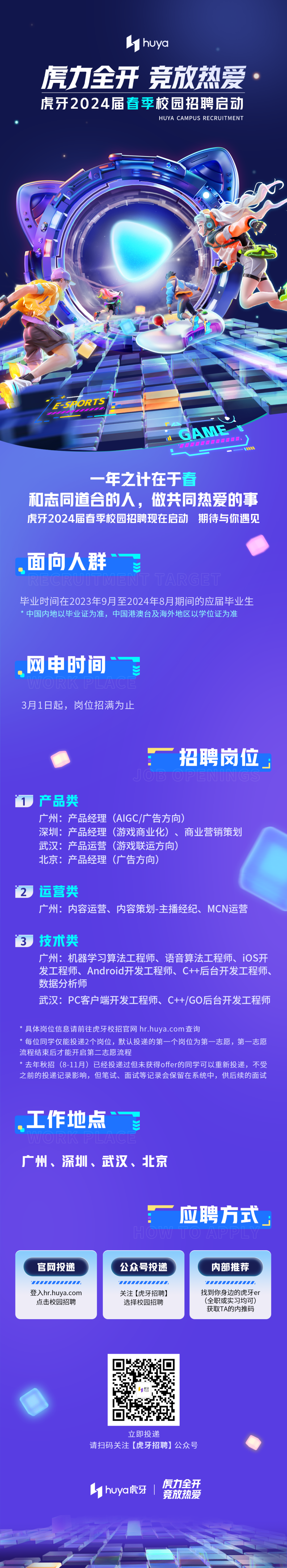 >【校园招聘】虎牙2024届春季校园招聘启动